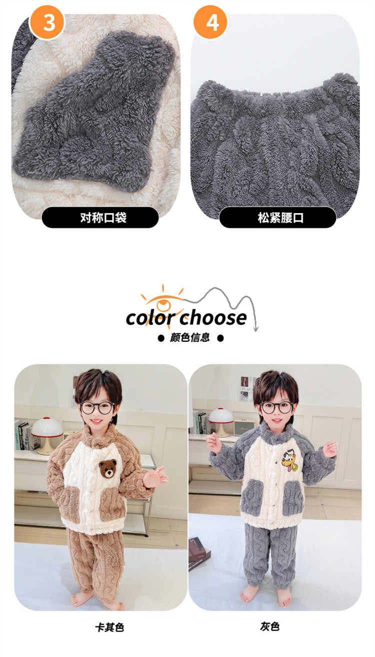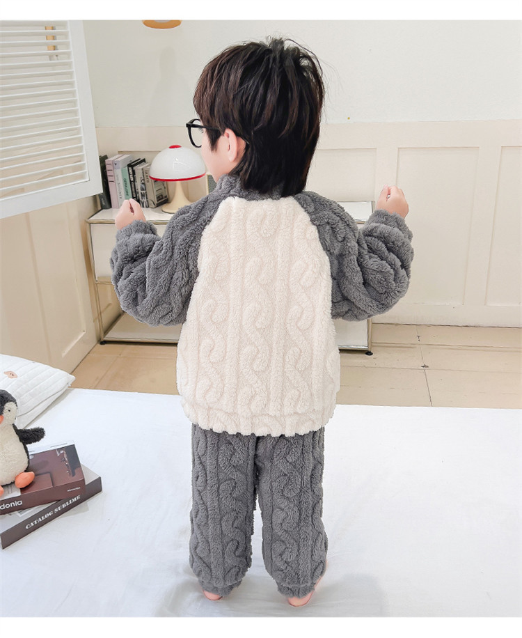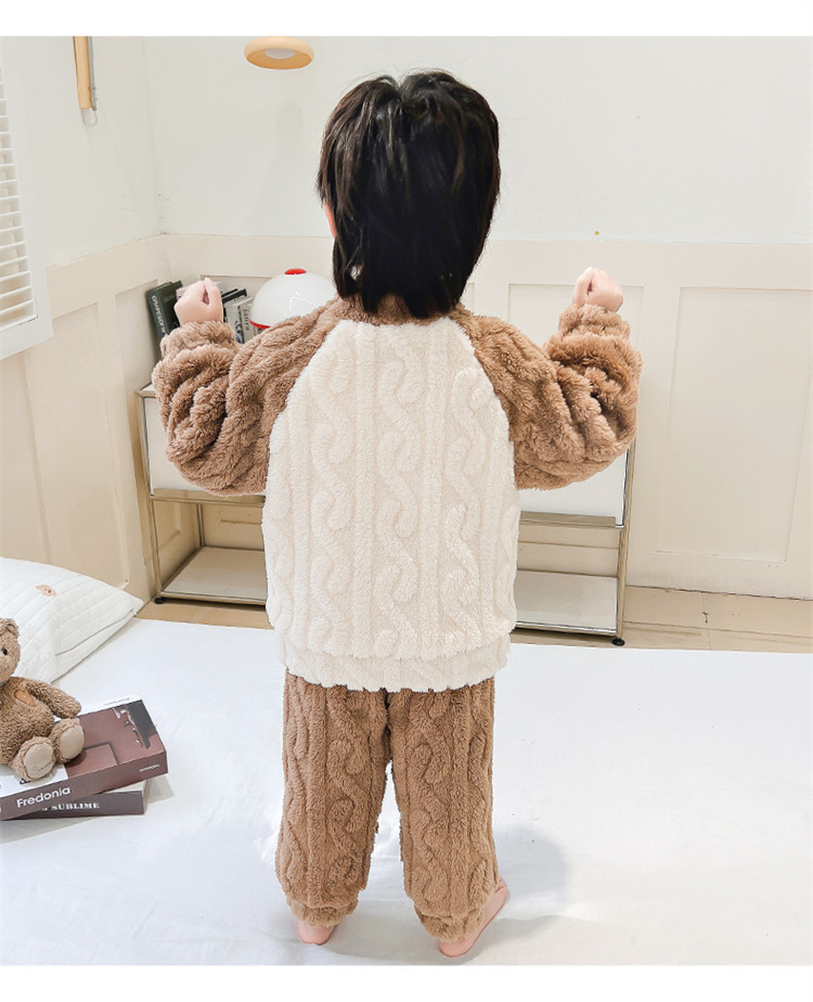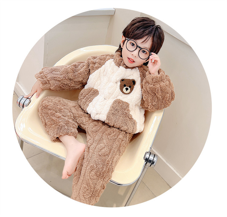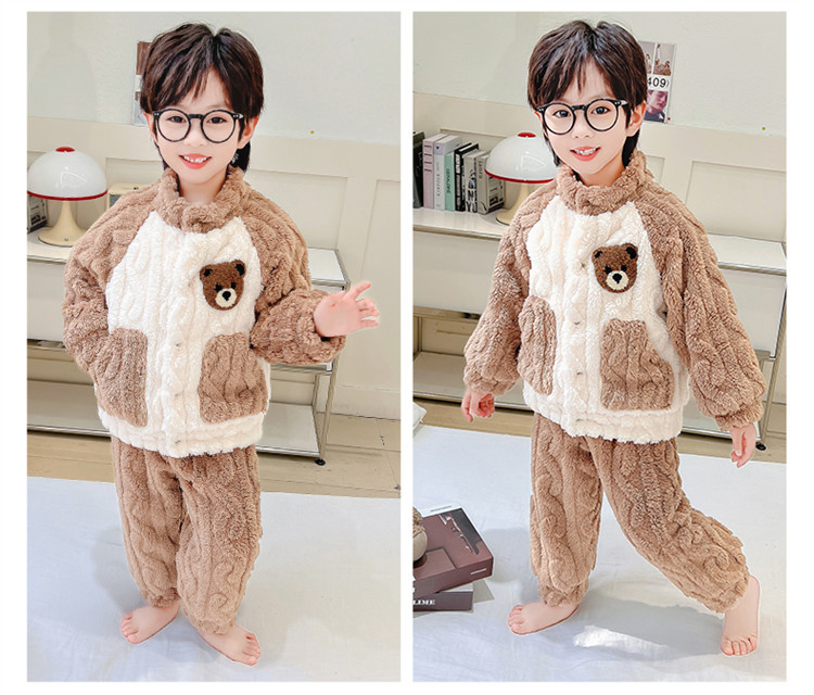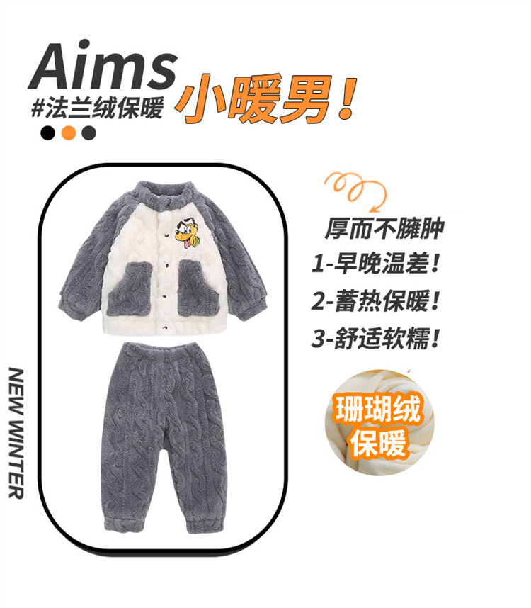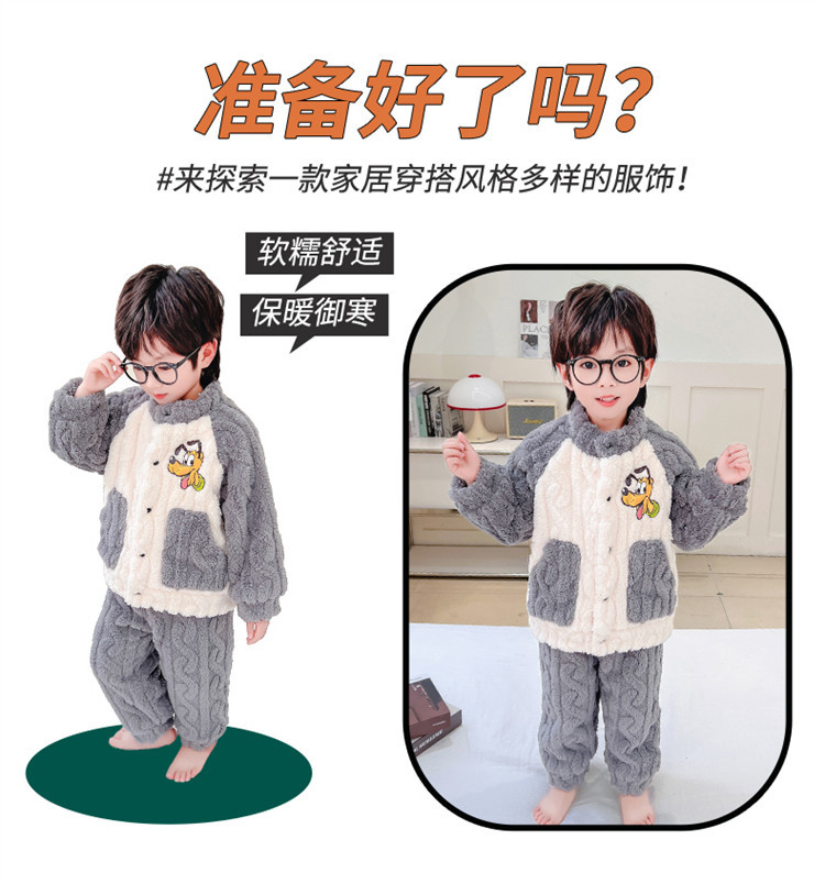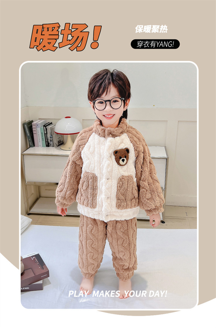 소년의 잠옷 산호 양털 카디건 가을과 겨울 소년 만화 더블 레이어 홈 웨어는 아이들의 두꺼운 플란넬 겨울을 세트