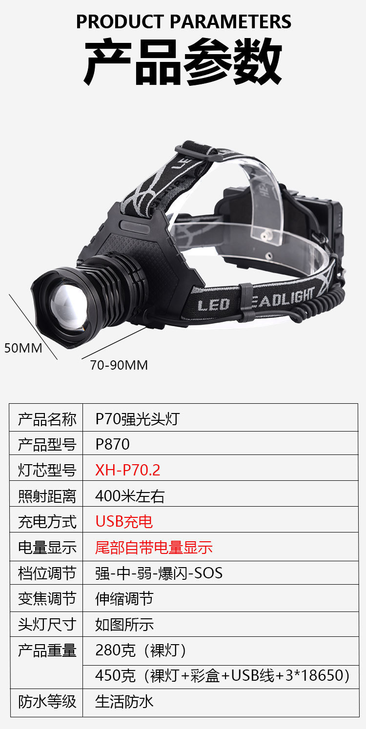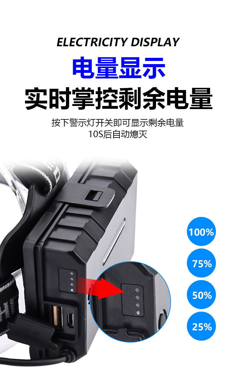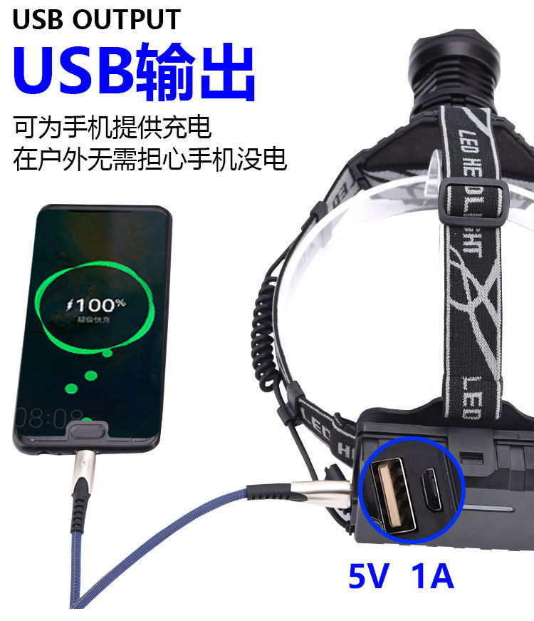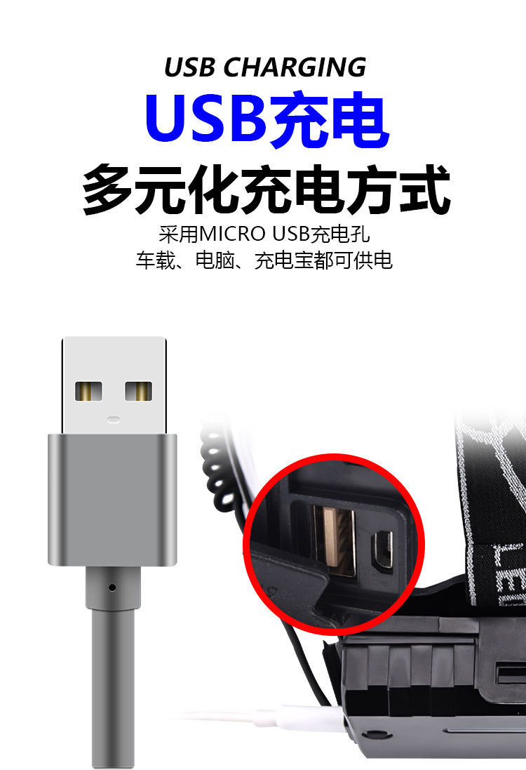 包裹包含:头灯+彩盒+USB线