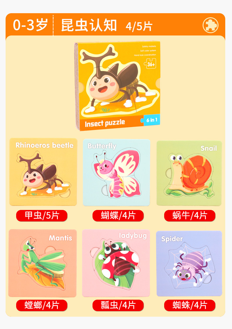 어린이 퍼즐 퍼즐 2 세 아기 3 ~ 6 어린이 지능 개발 0-3 소년 동물 2 명의 여성 4 개 항목 장난감스토어 가기