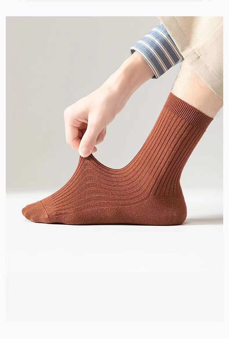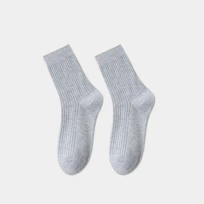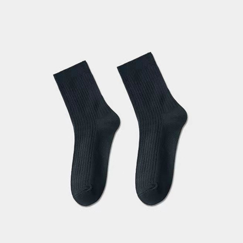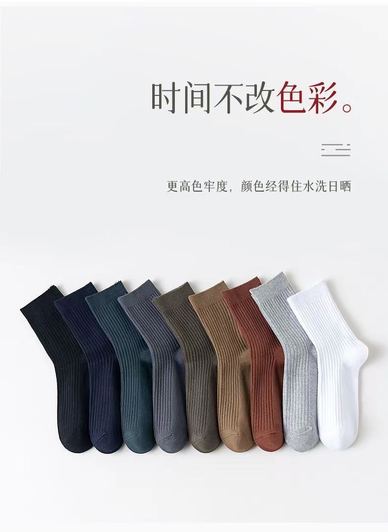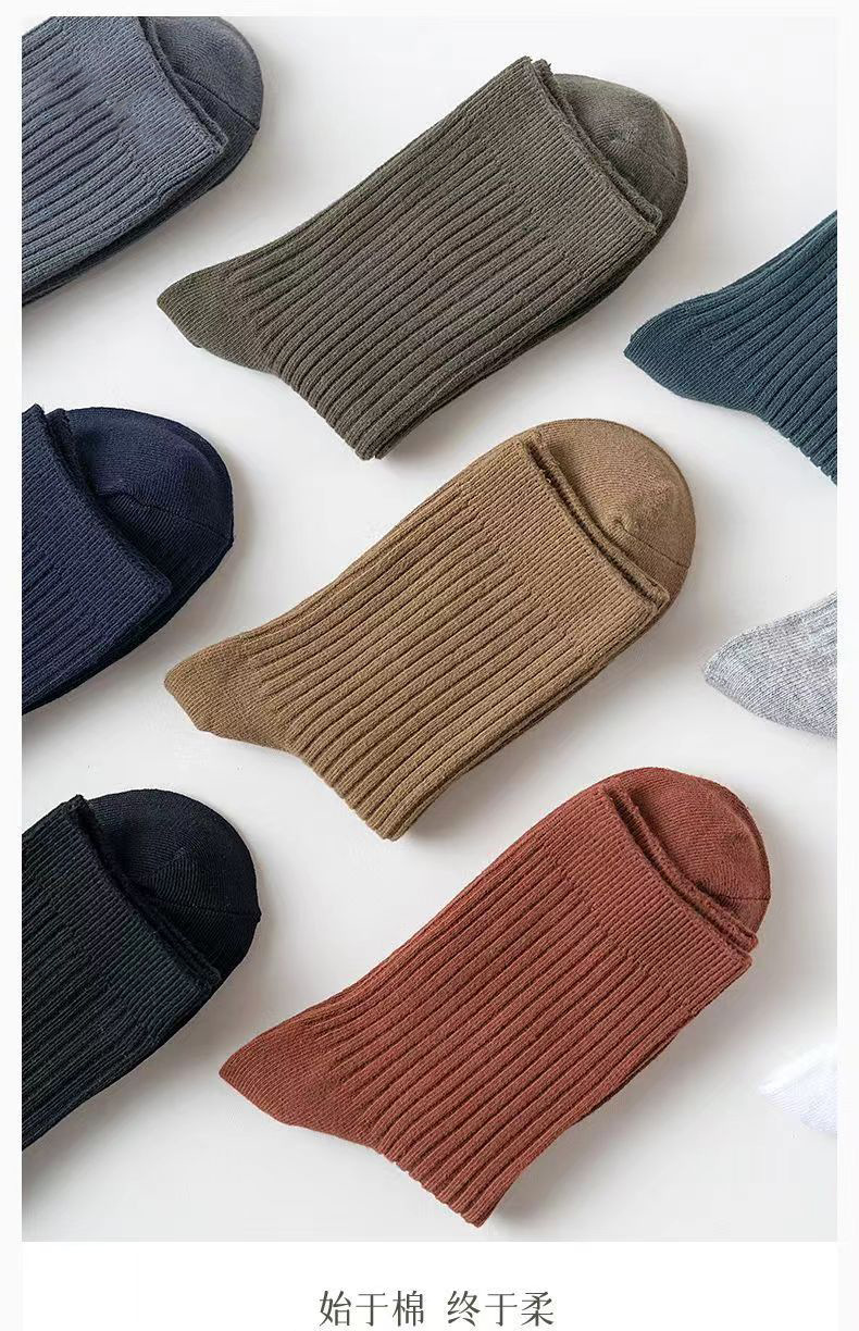 양말 남성 가을과 겨울 새로운 중간 종아리 길이 양말 단색 세로 줄무늬 더블 바늘 여성 양말 캐주얼 스타킹 남성과 여성의 통기성 면화 양말