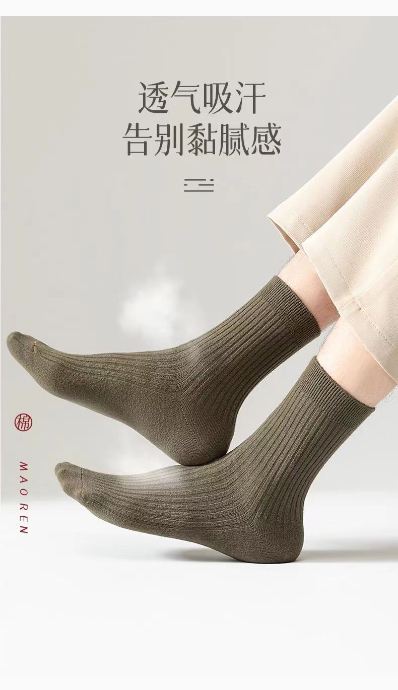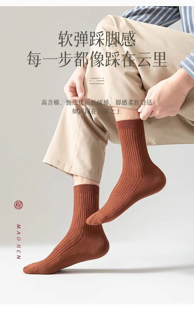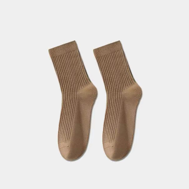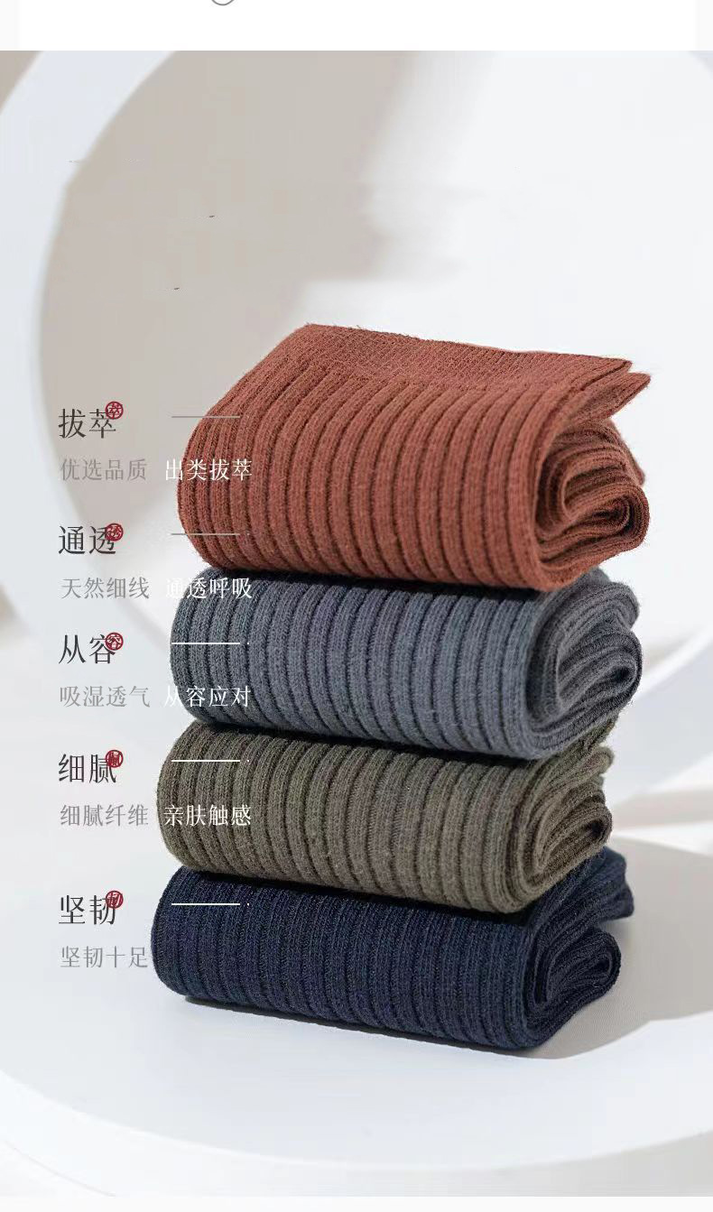 양말 남성 가을과 겨울 새로운 중간 종아리 길이 양말 단색 세로 줄무늬 더블 바늘 여성 양말 캐주얼 스타킹 남성과 여성의 통기성 면화 양말