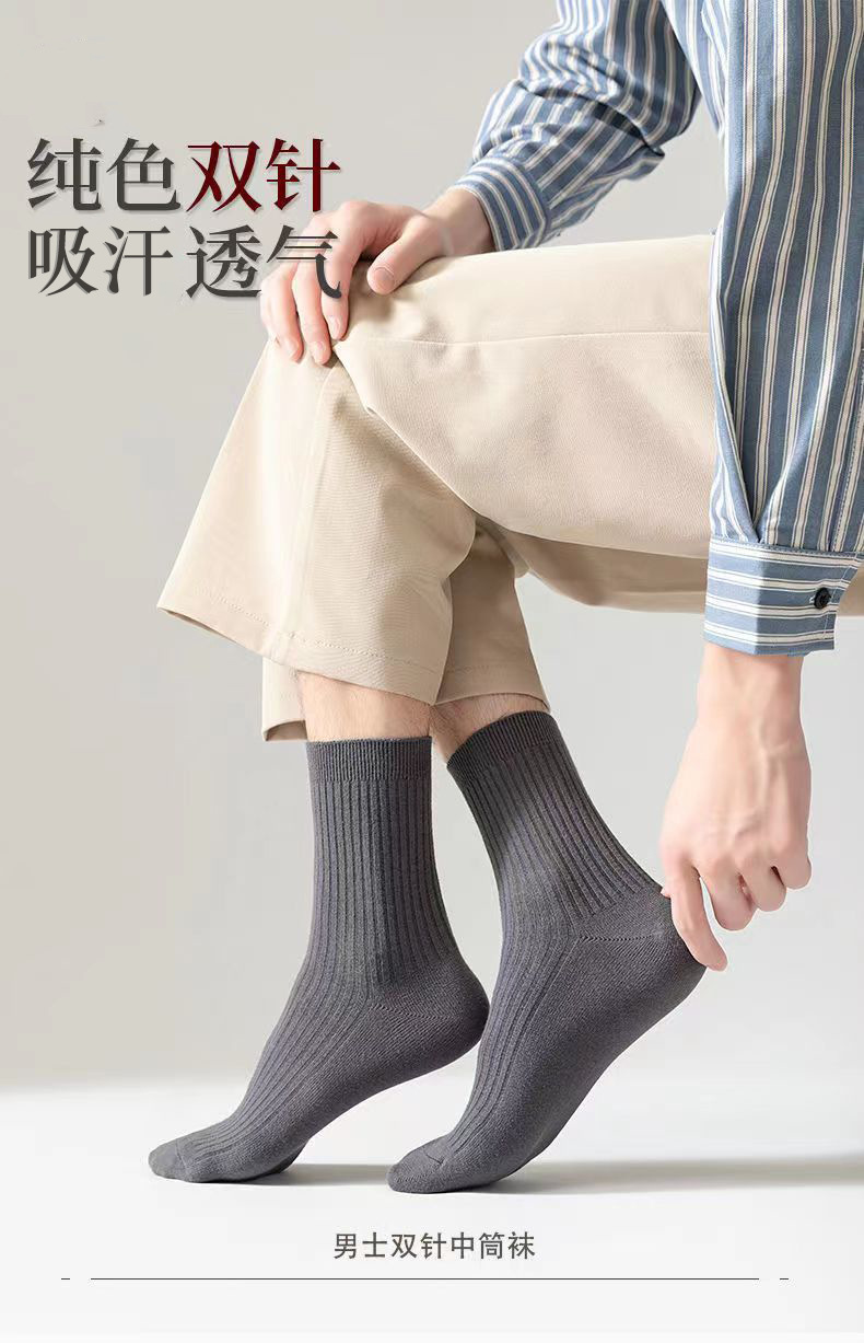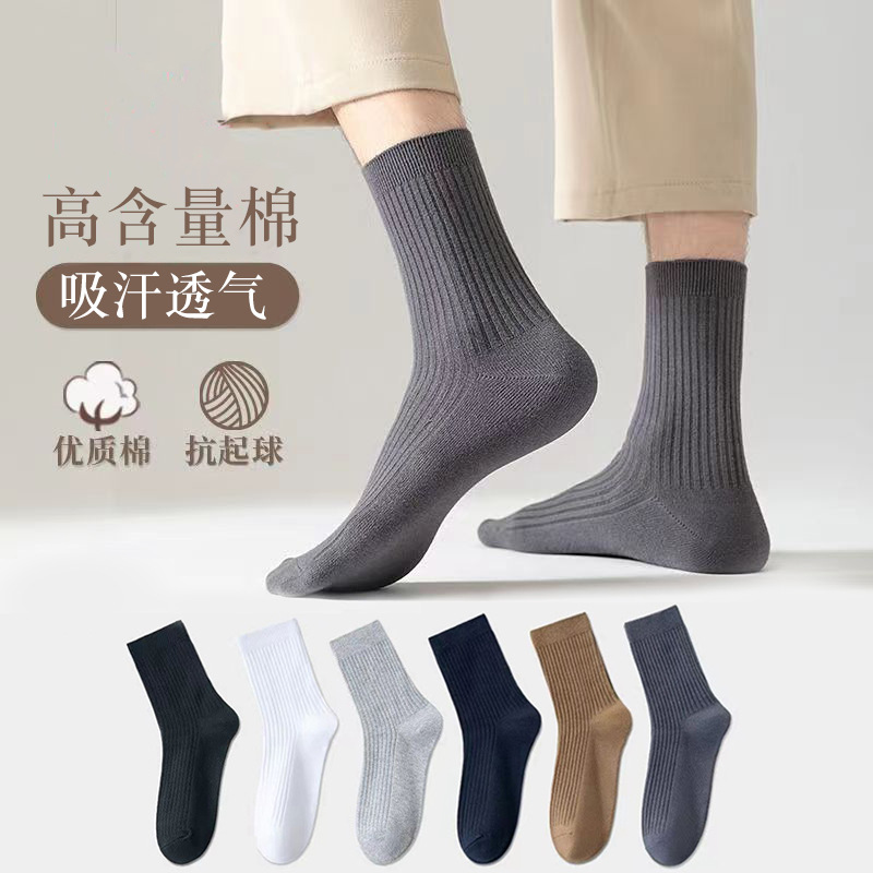 양말 남성 가을과 겨울 새로운 중간 종아리 길이 양말 단색 세로 줄무늬 더블 바늘 여성 양말 캐주얼 스타킹 남성과 여성의 통기성 면화 양말스토어 가기