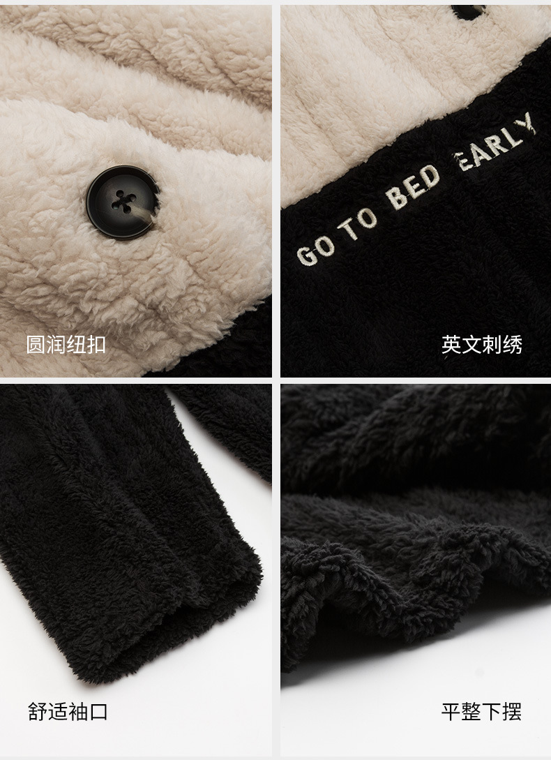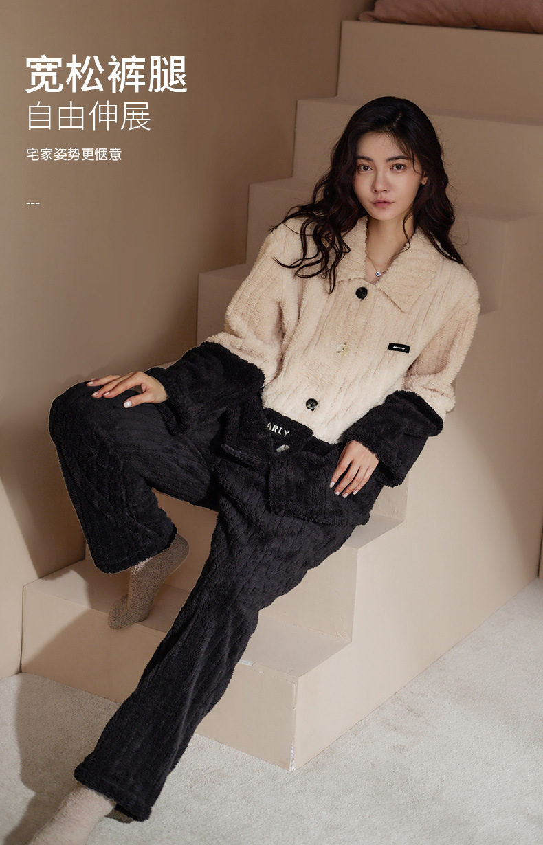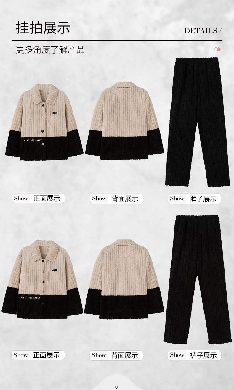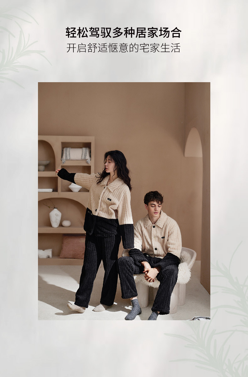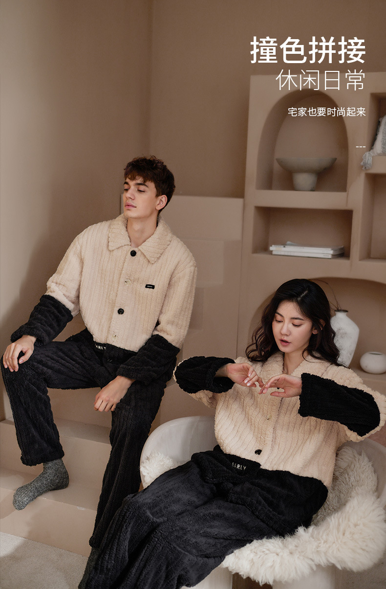 Nidiya 새로운 커플 잠옷 여성의 가을과 겨울 산호 양털 옷깃 카디건 남성용 간단한 줄무늬 홈웨어 세트스토어 가기