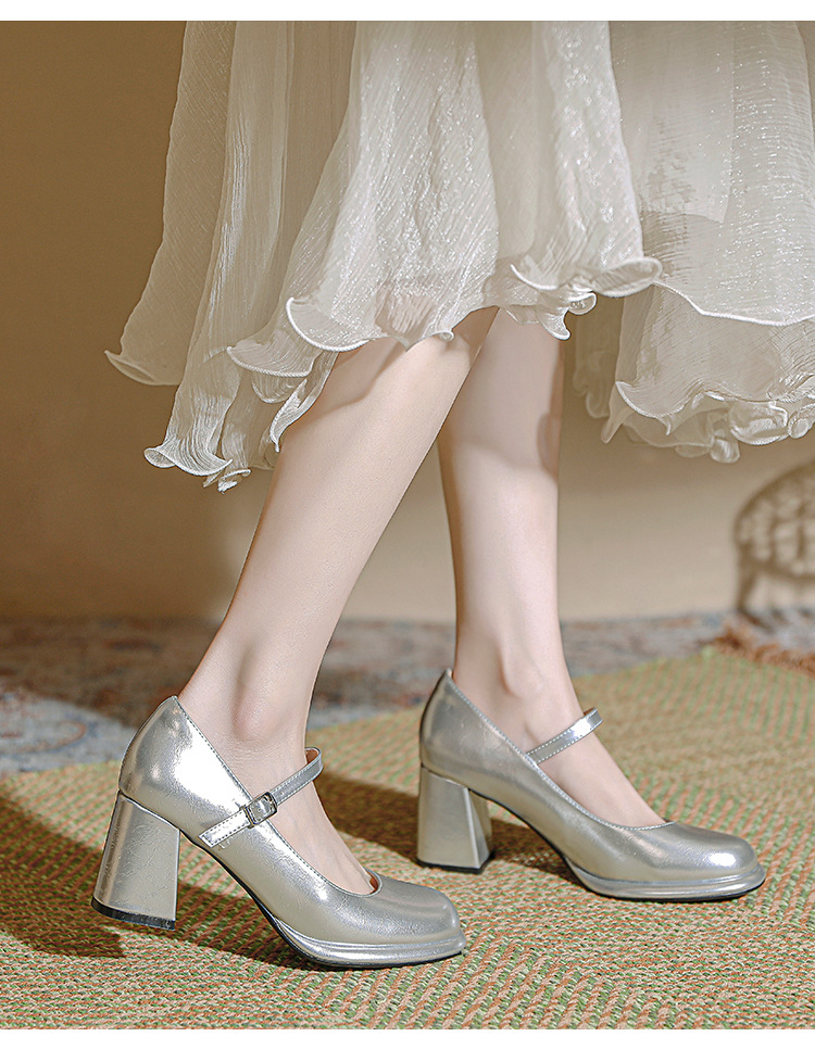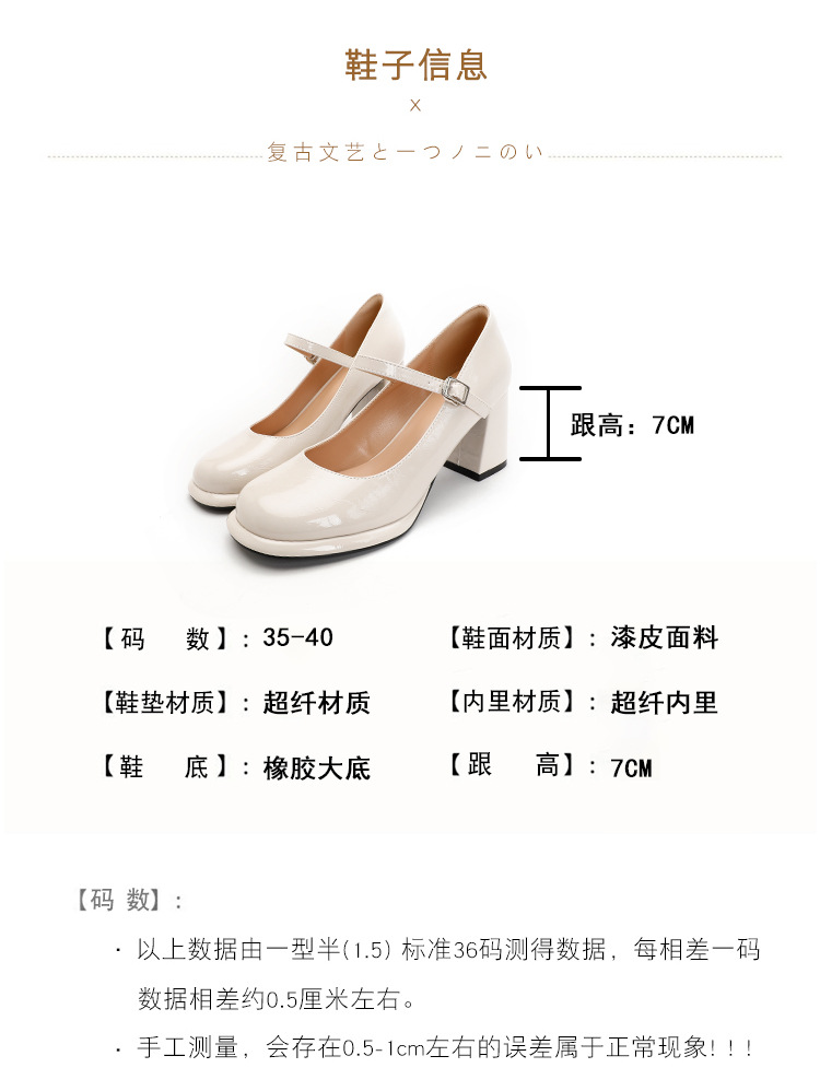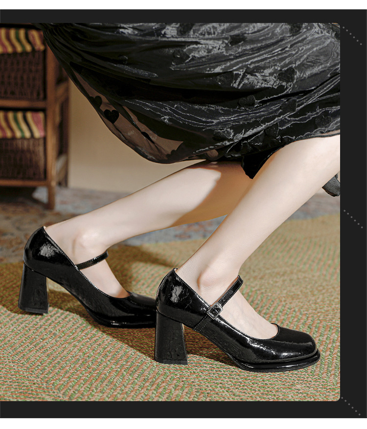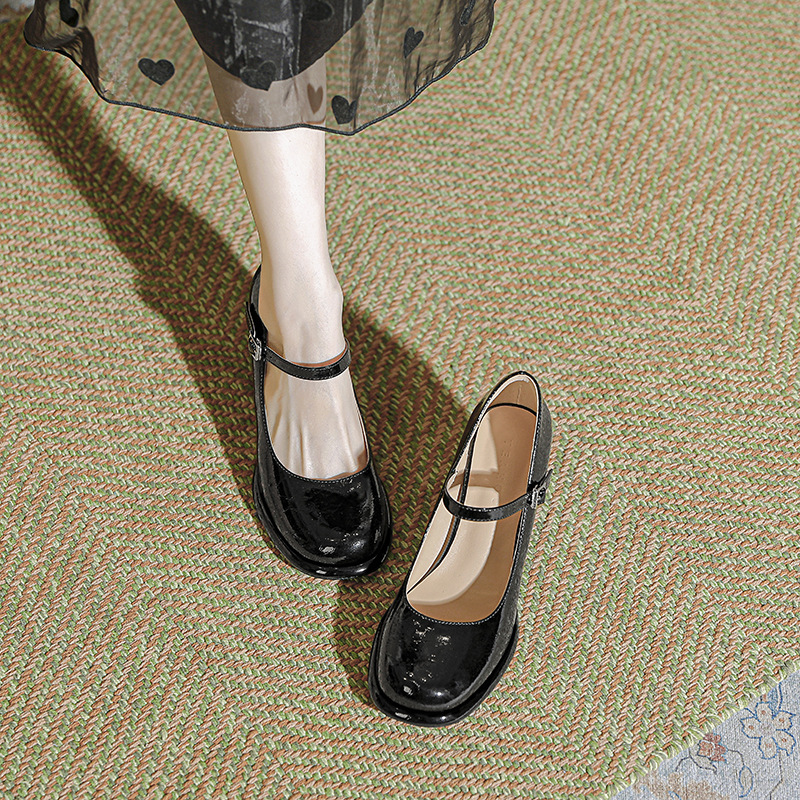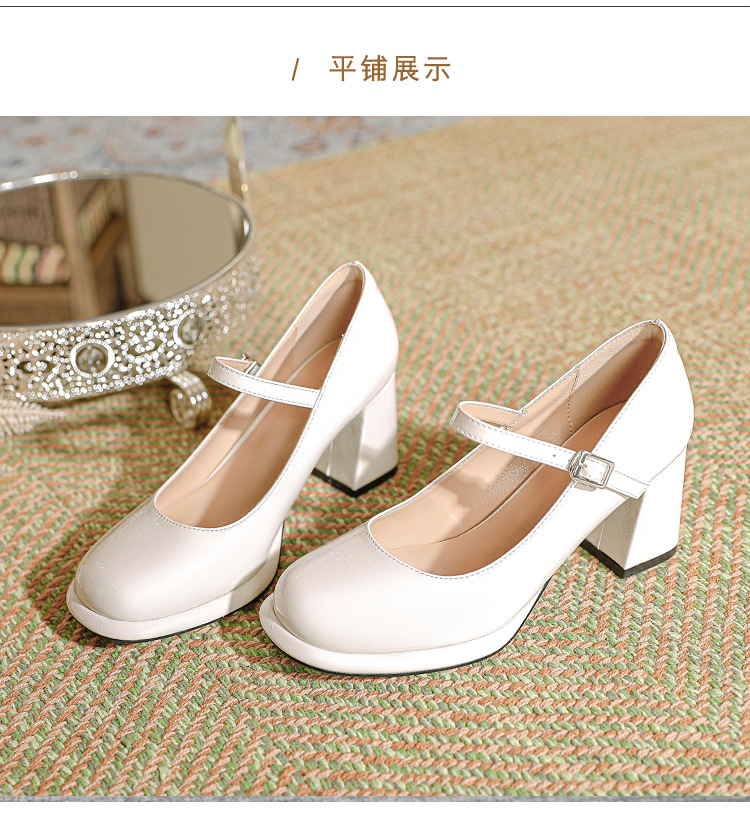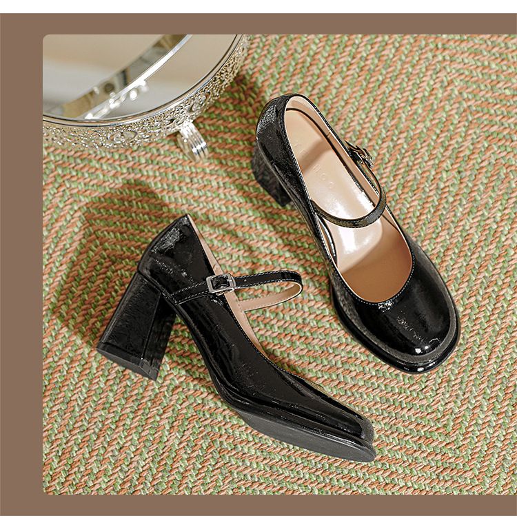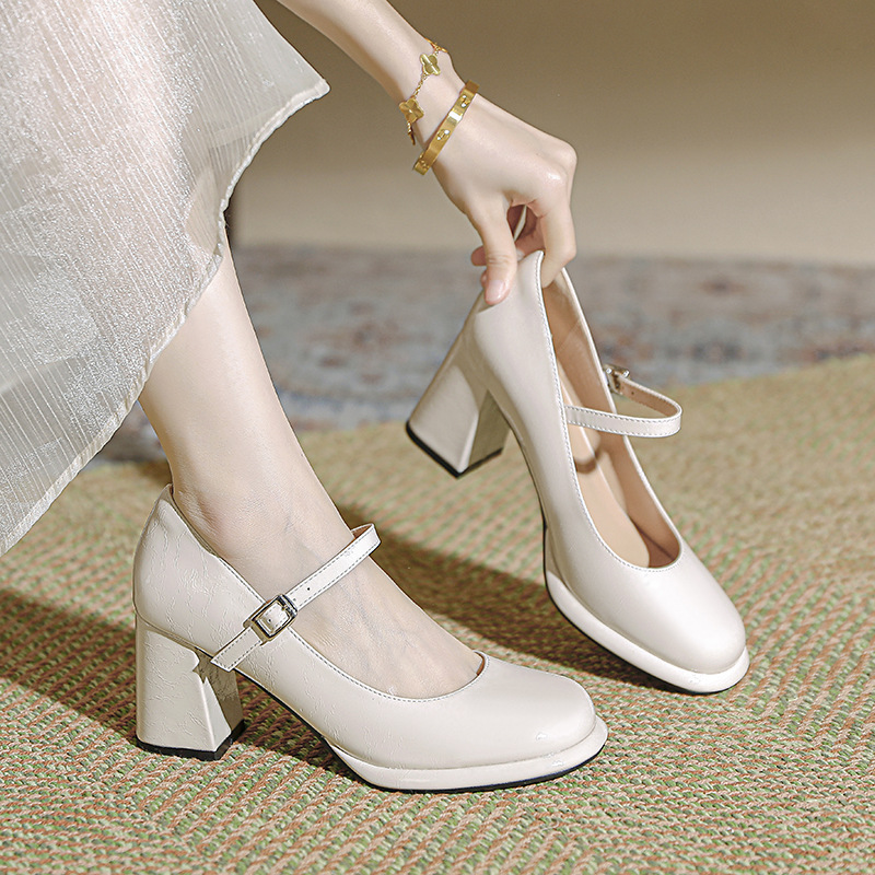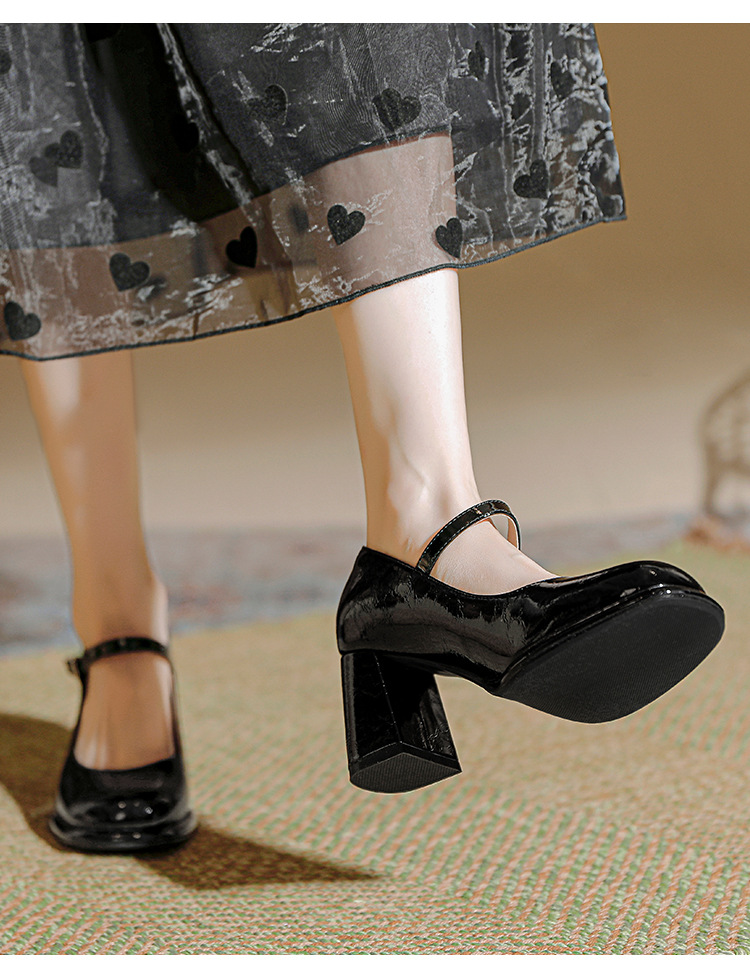 봄과 가을 프랑스 스타일 블랙 라운드 토 메리 제인 신발 여성용 두꺼운 힐 신발 방수 플랫폼 하이 힐 여성 신발 버클