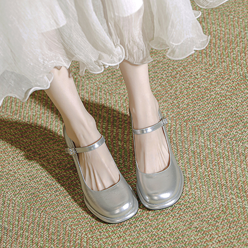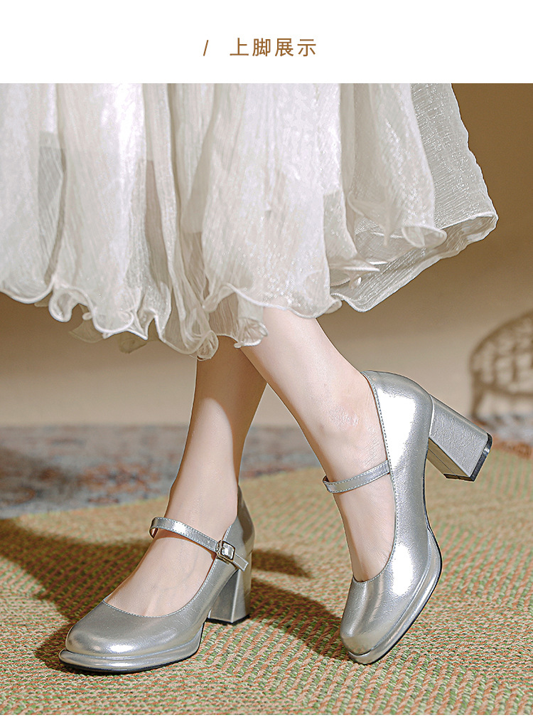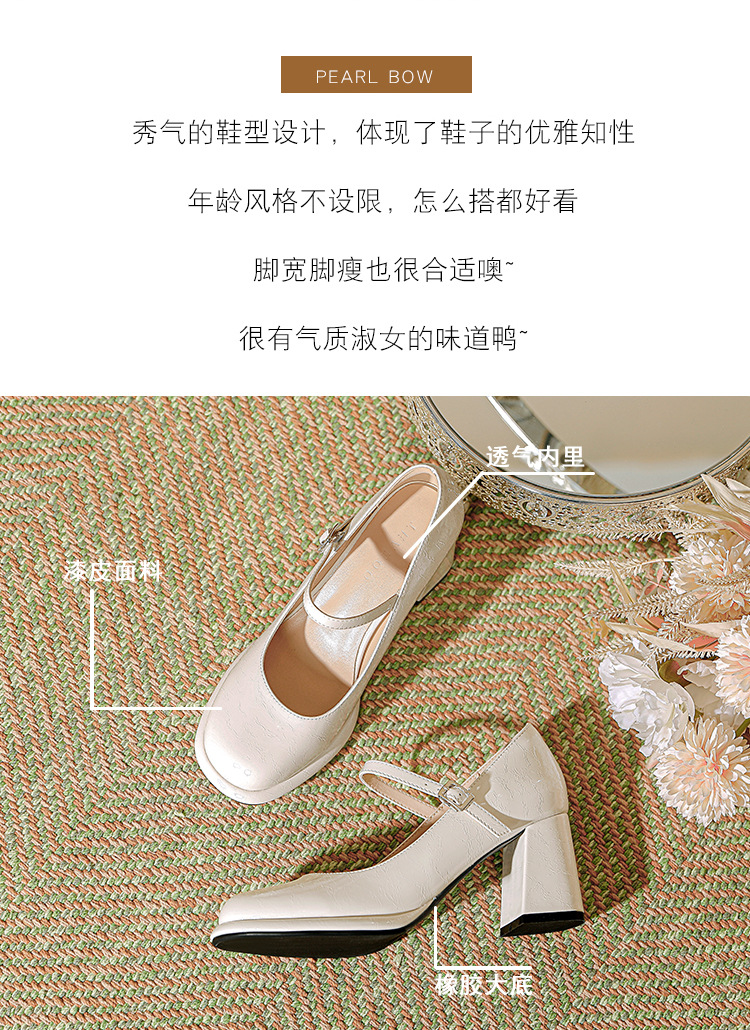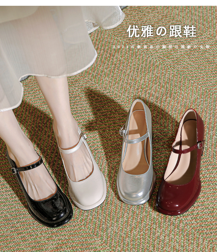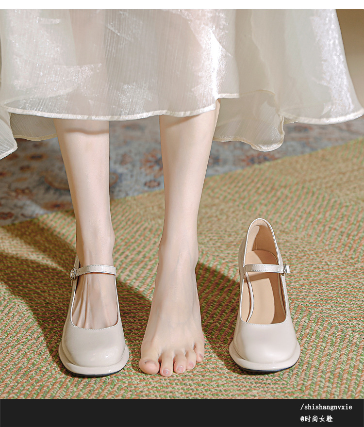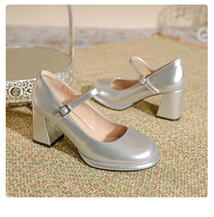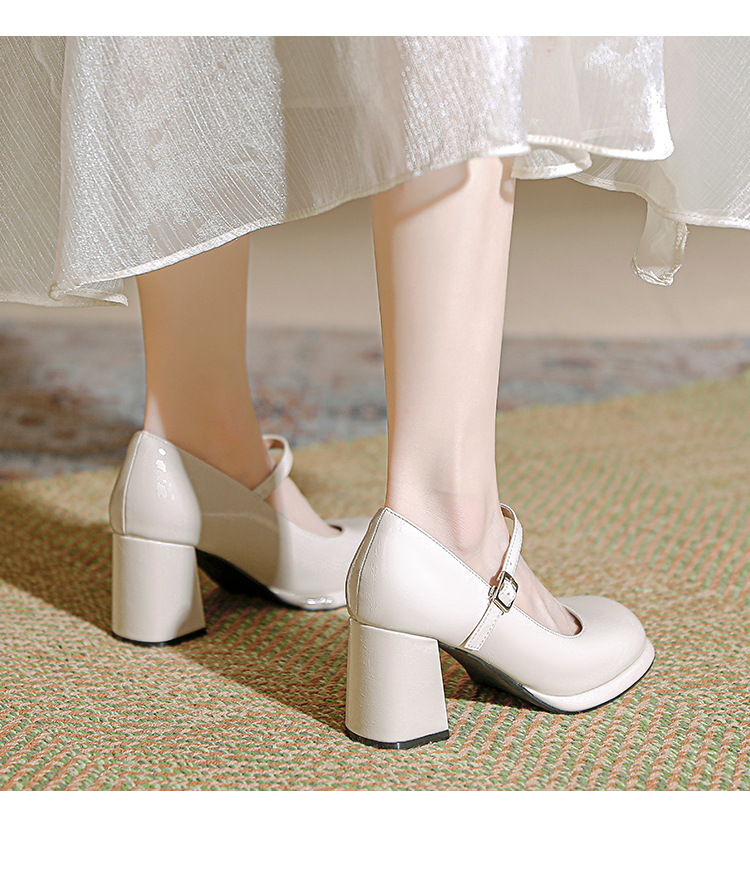 봄과 가을 프랑스 스타일 블랙 라운드 토 메리 제인 신발 여성용 두꺼운 힐 신발 방수 플랫폼 하이 힐 여성 신발 버클