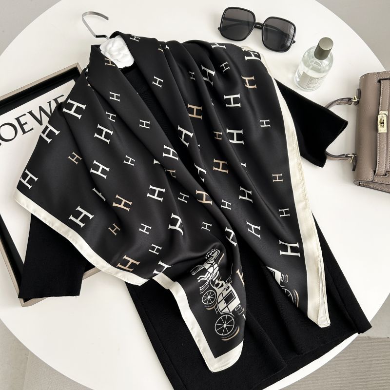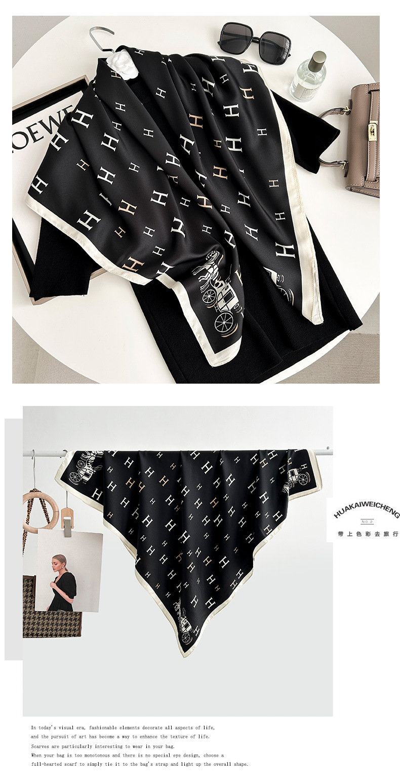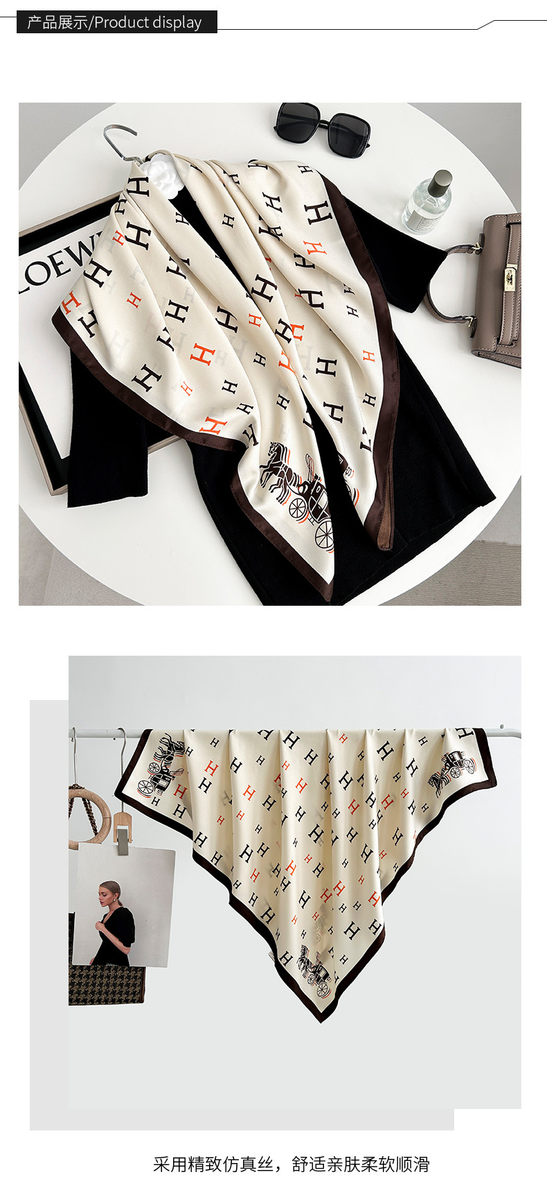 새로운 하이 엔드 빅 브랜드 H 자형 인쇄 흰색 우아한 인공 실크 여성 트윌 실크 장식 외부 전문 스카프