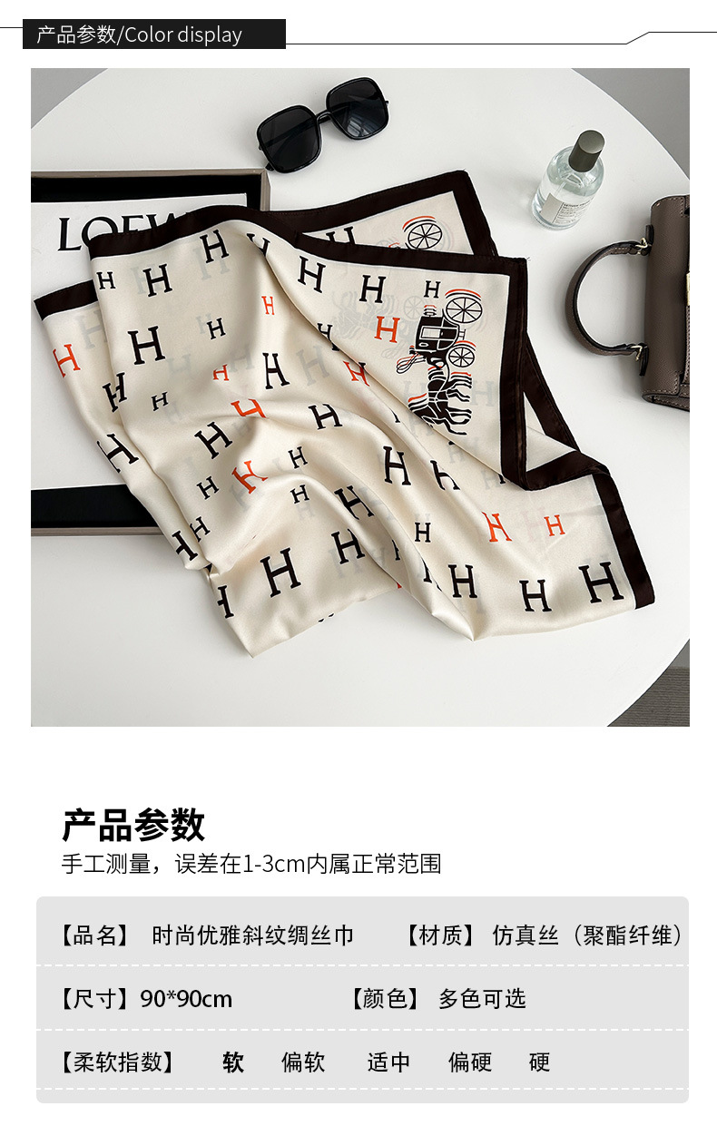 새로운 하이 엔드 빅 브랜드 H 자형 인쇄 흰색 우아한 인공 실크 여성 트윌 실크 장식 외부 전문 스카프스토어 가기