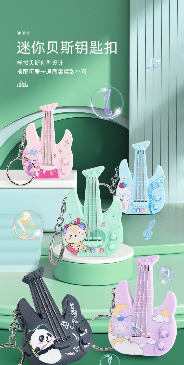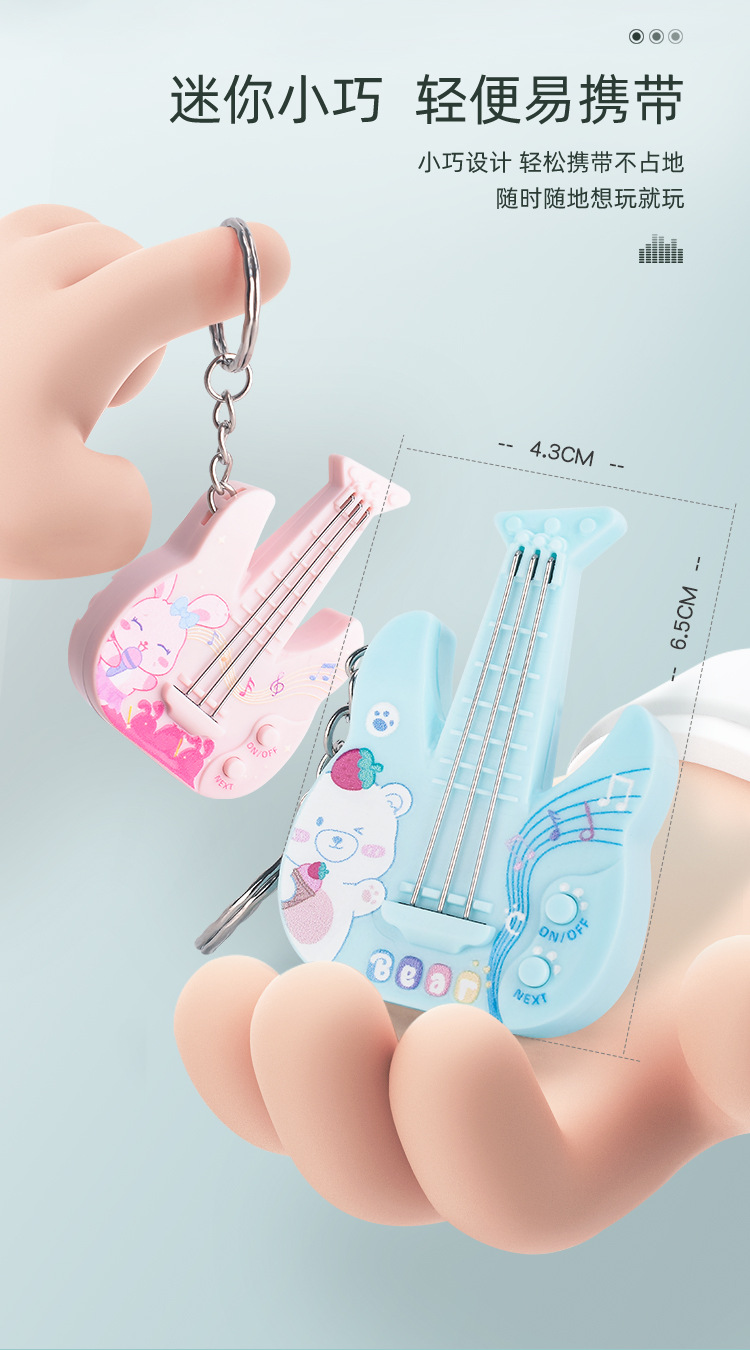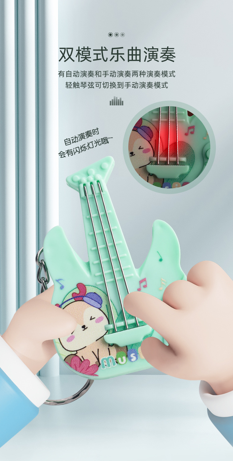 새로운 미니 전자 기타 전자베이스는 빛나는 키 체인 펜던트 장난감을 노래하는 음악을 재생할 수 있습니다