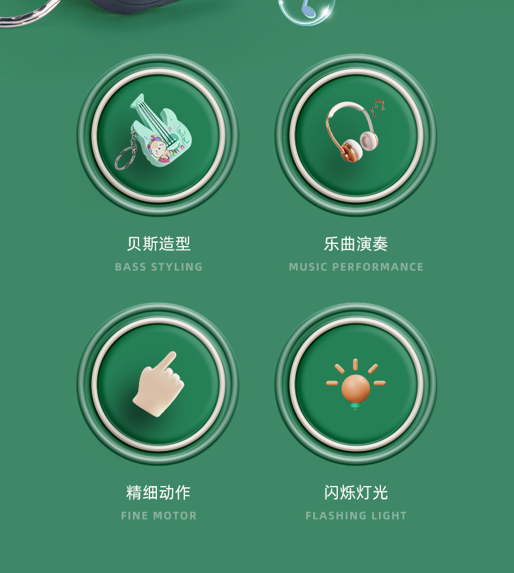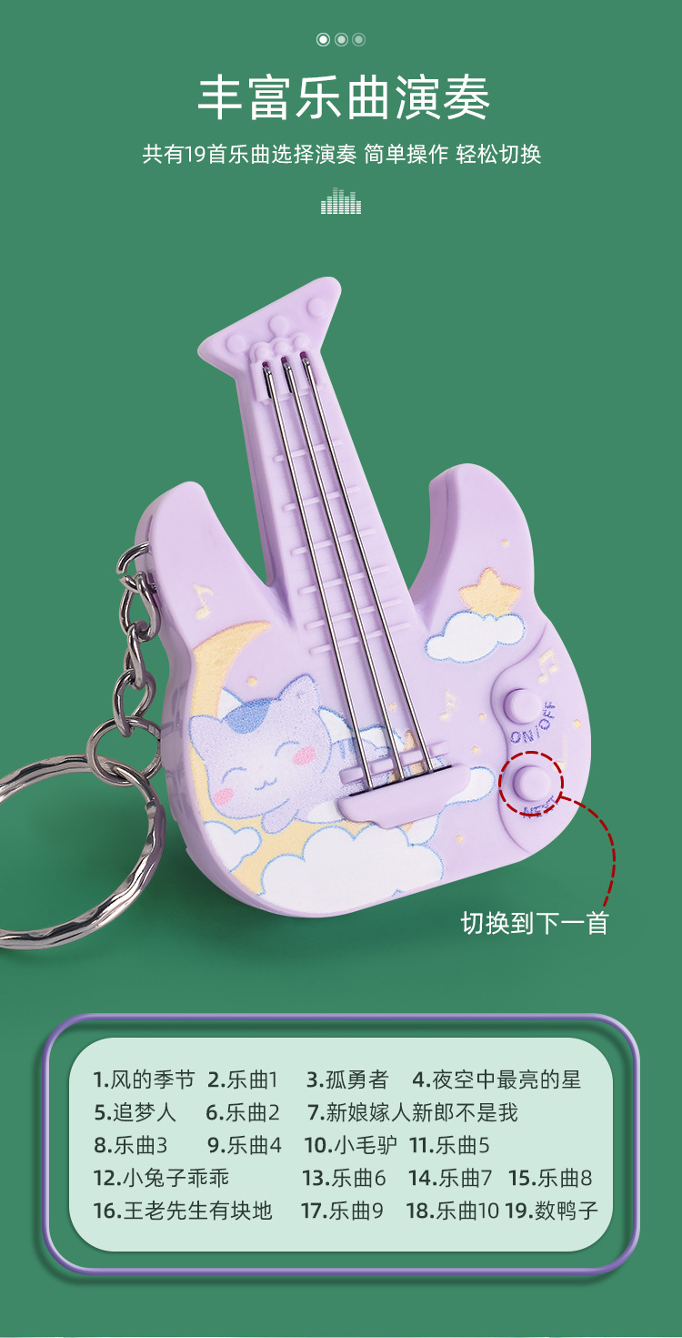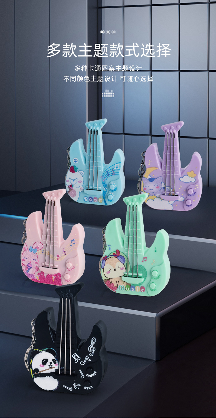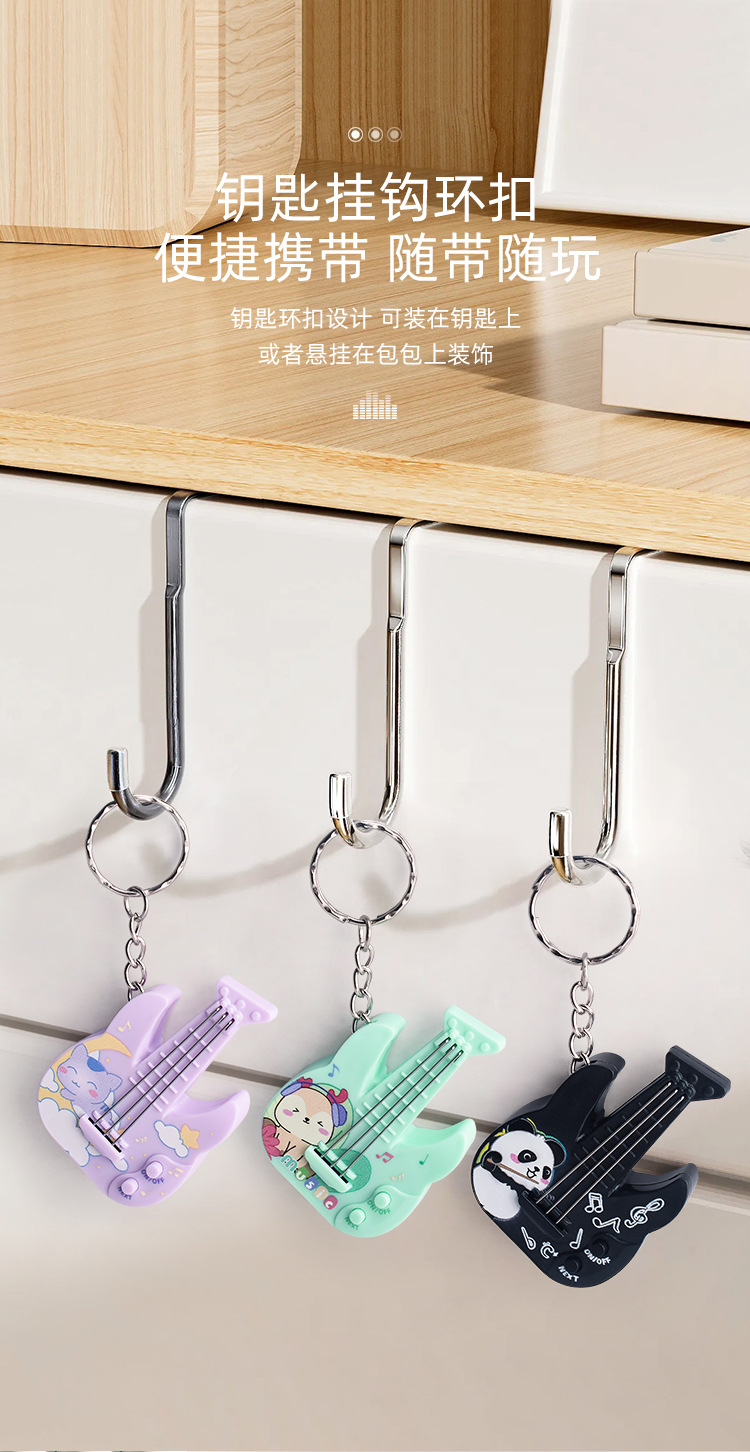 새로운 미니 전자 기타 전자베이스는 빛나는 키 체인 펜던트 장난감을 노래하는 음악을 재생할 수 있습니다