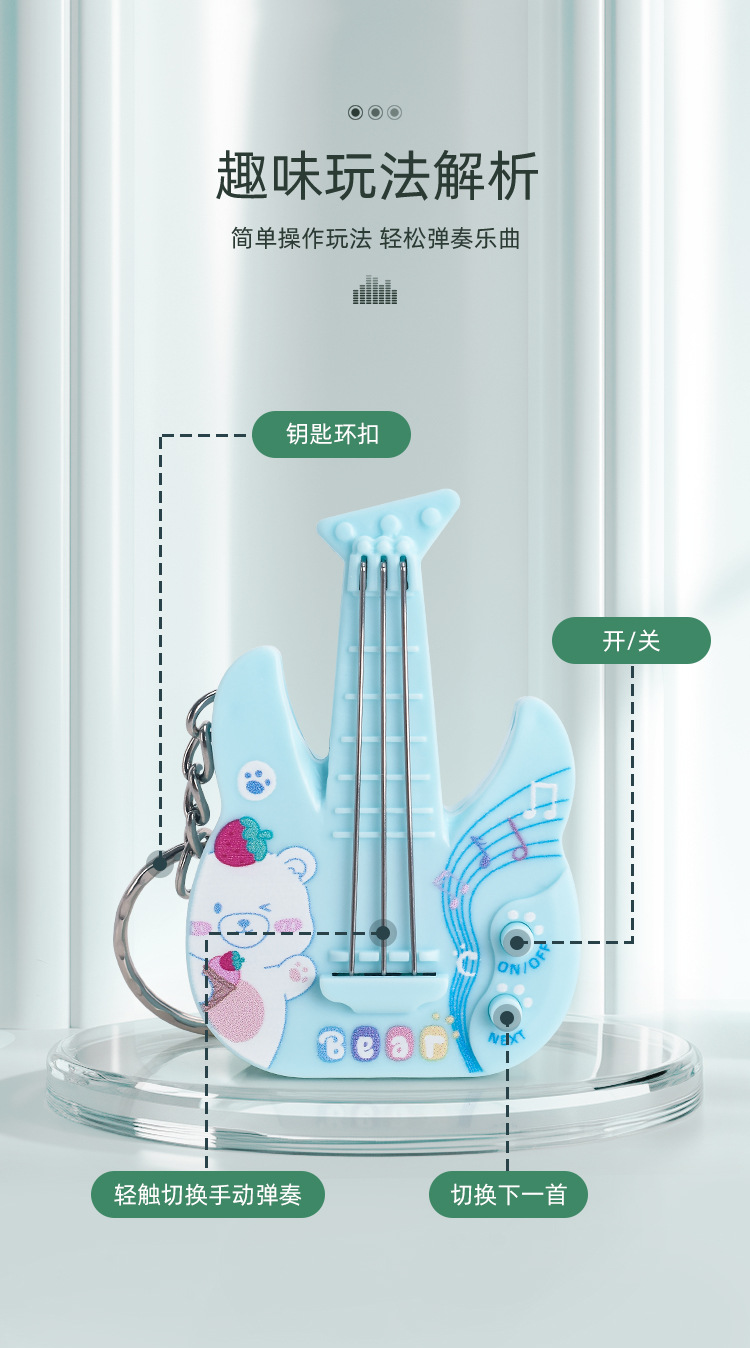 새로운 미니 전자 기타 전자베이스는 빛나는 키 체인 펜던트 장난감을 노래하는 음악을 재생할 수 있습니다스토어 가기