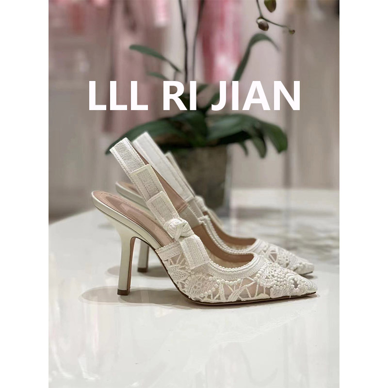 LLL RI JIAN 새로운 레이스 자수 하이힐 발가락 샌들 여성용 미드 힐 고양이 힐스토어 가기