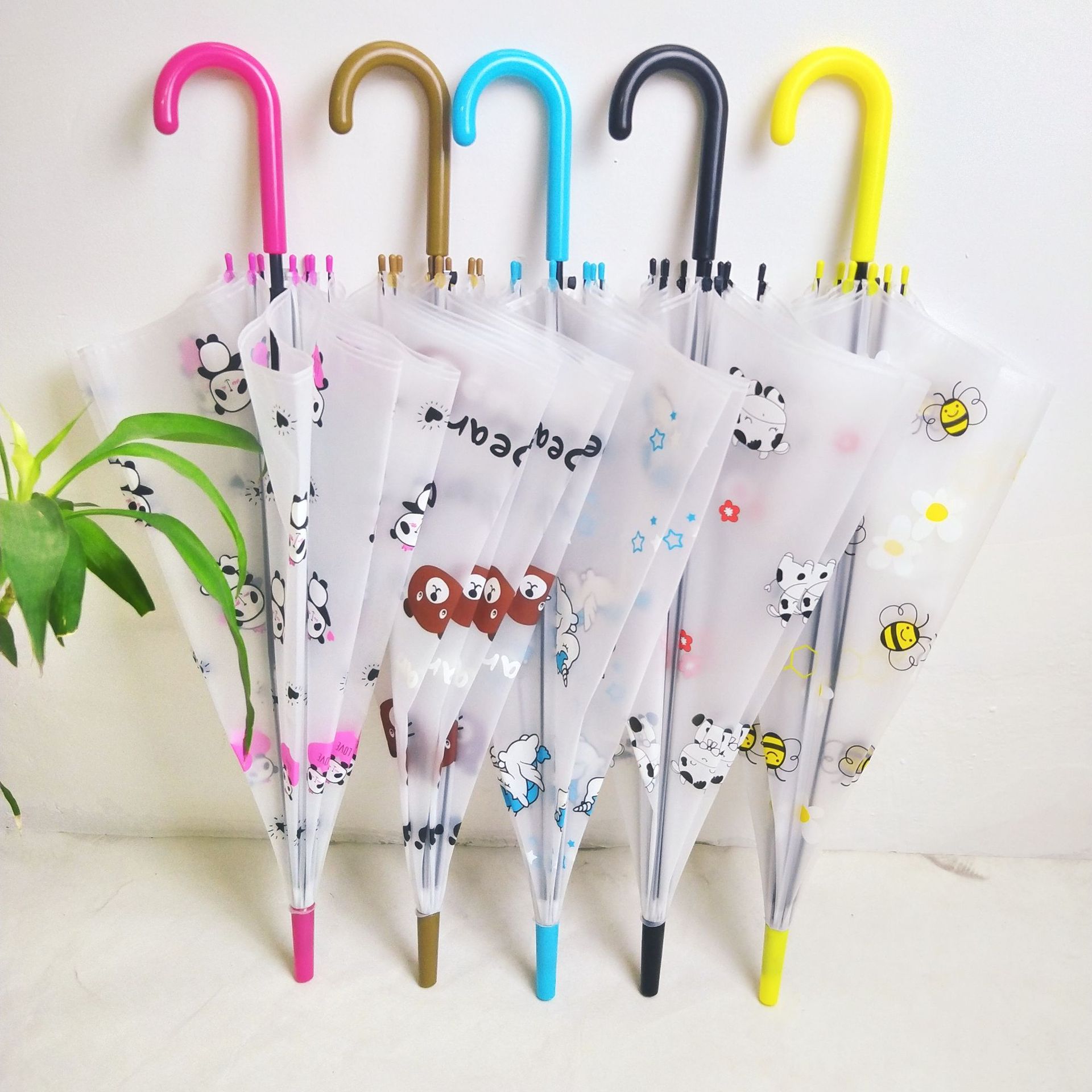 공장 도매 신선한 서리 투명 우산 어린이 만화 학생 우산 강화 긴 손잡이 자동 투명 우산 확대스토어 가기