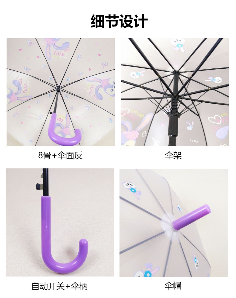 창조적 인 작은 신선한 poe 투명한 우산 귀여운 학생 우산 8 뼈 긴 손잡이 자동 투명 우산 공장 아울렛스토어 가기