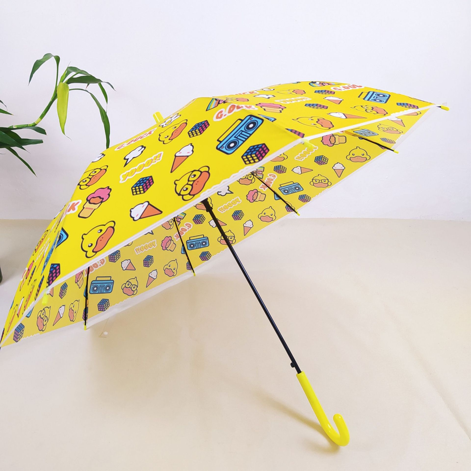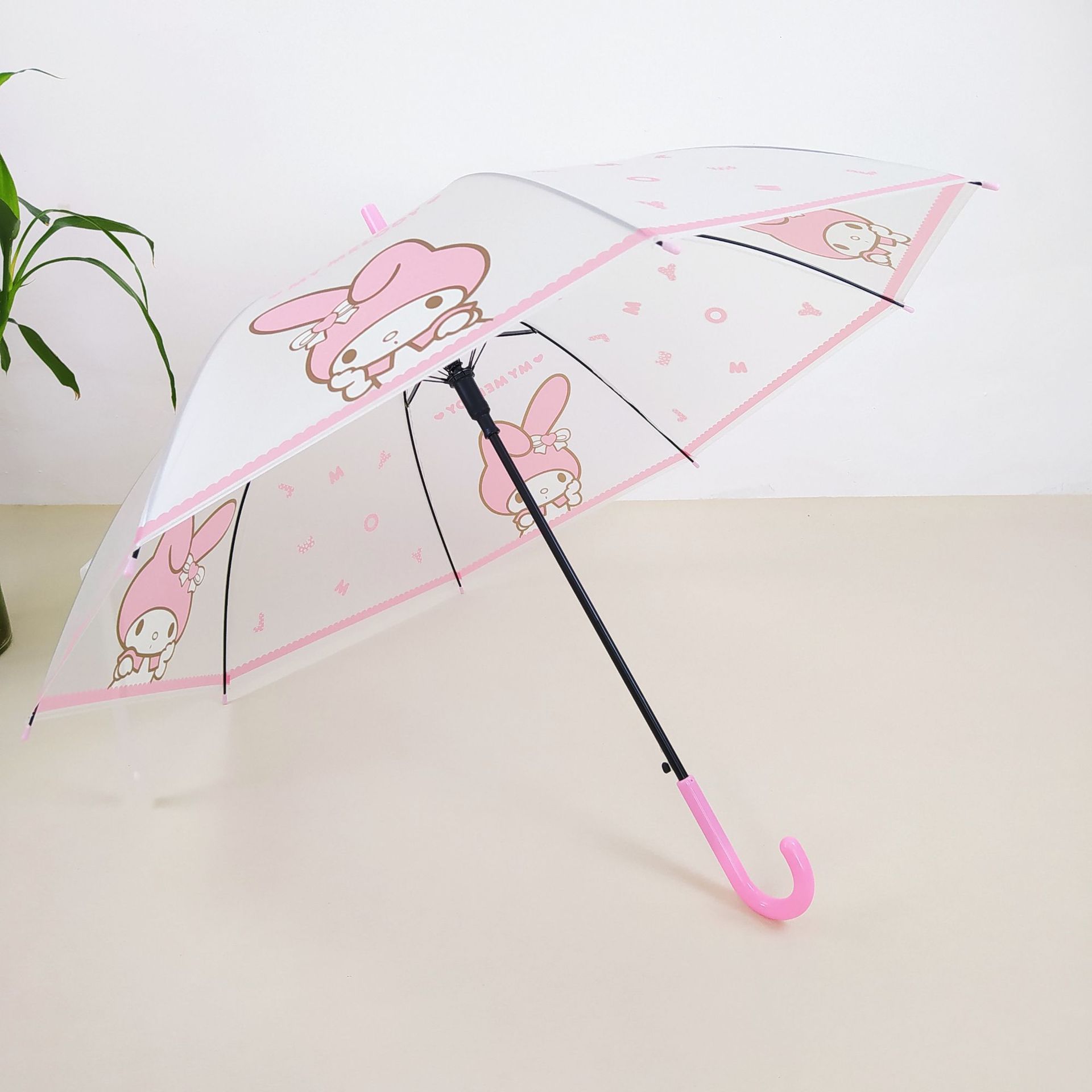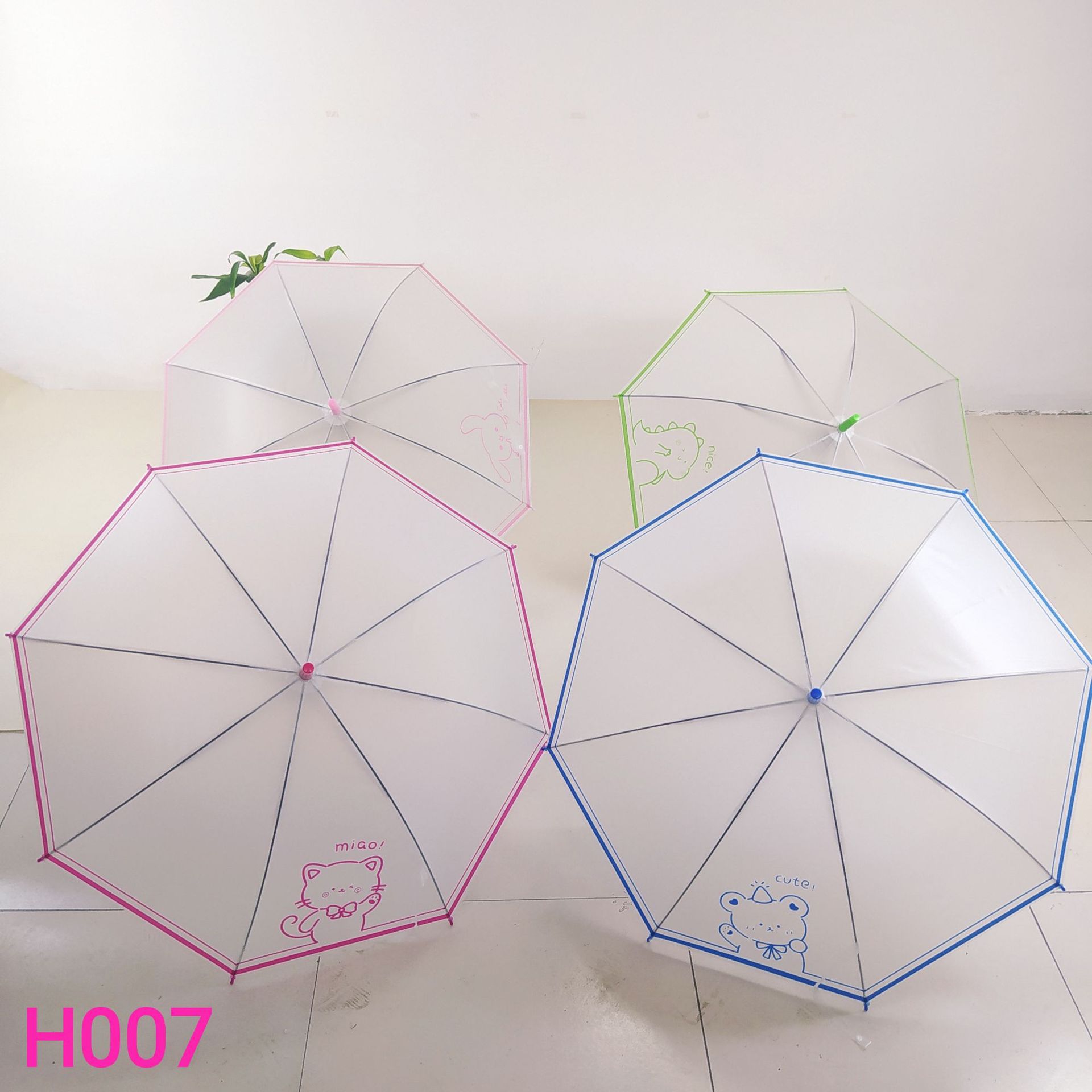 창조적 인 작은 신선한 poe 투명한 우산 귀여운 학생 우산 8 뼈 긴 손잡이 자동 투명 우산 공장 아울렛