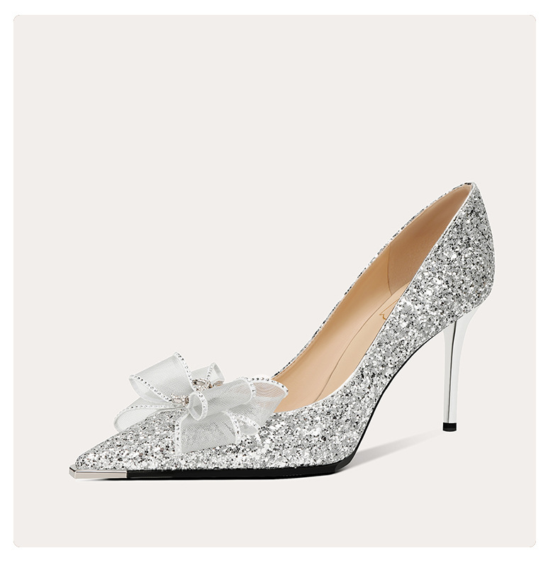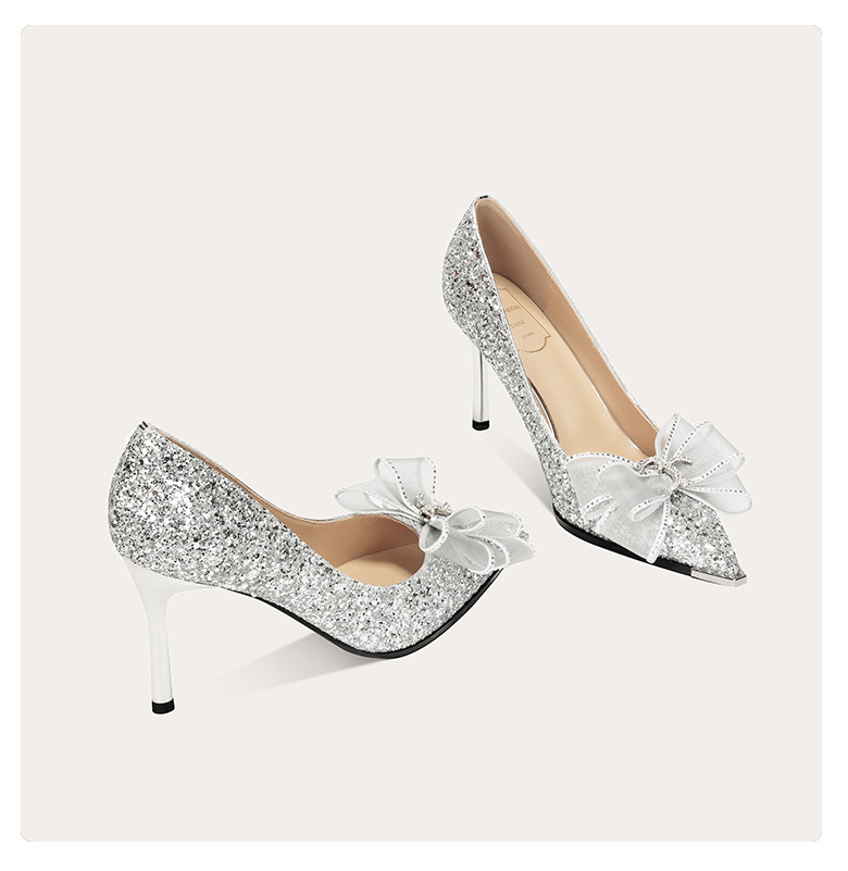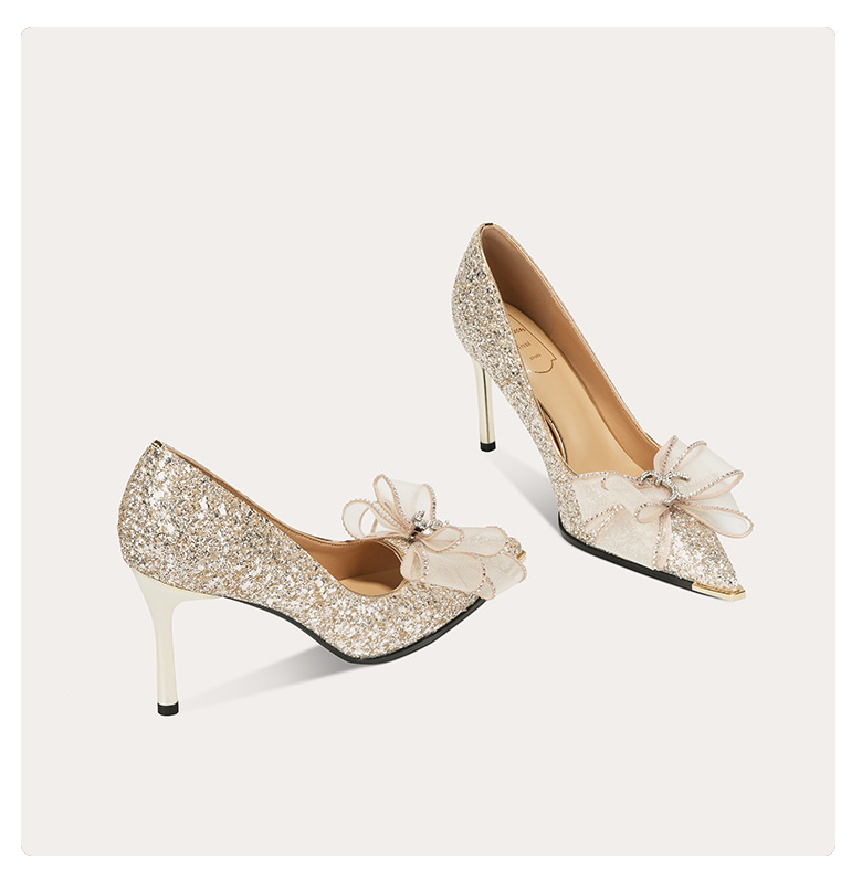 908-9 웨딩 신발 웨딩 신발 Xiuhe 웨딩 원피스 양방향 착용 새로운 신부 활 금속 뾰족한 하이힐스토어 가기