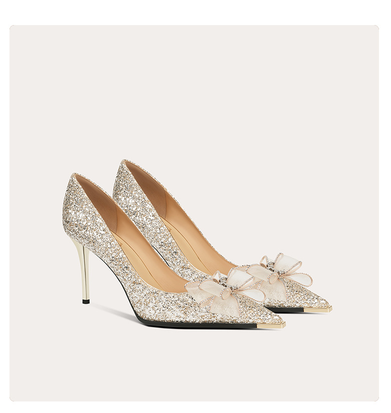 908-9 웨딩 신발 웨딩 신발 Xiuhe 웨딩 원피스 양방향 착용 새로운 신부 활 금속 뾰족한 하이힐