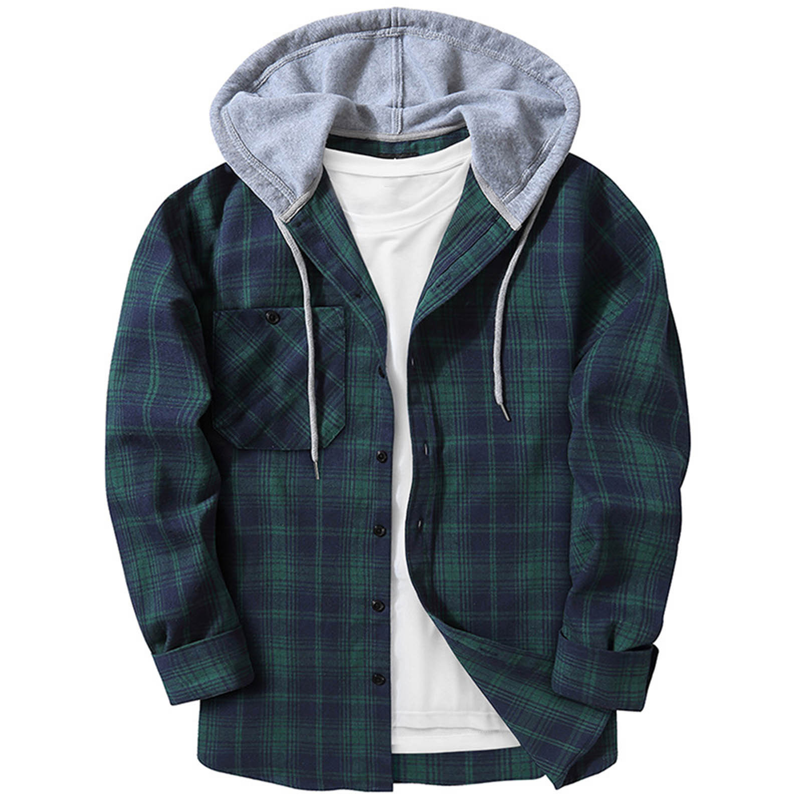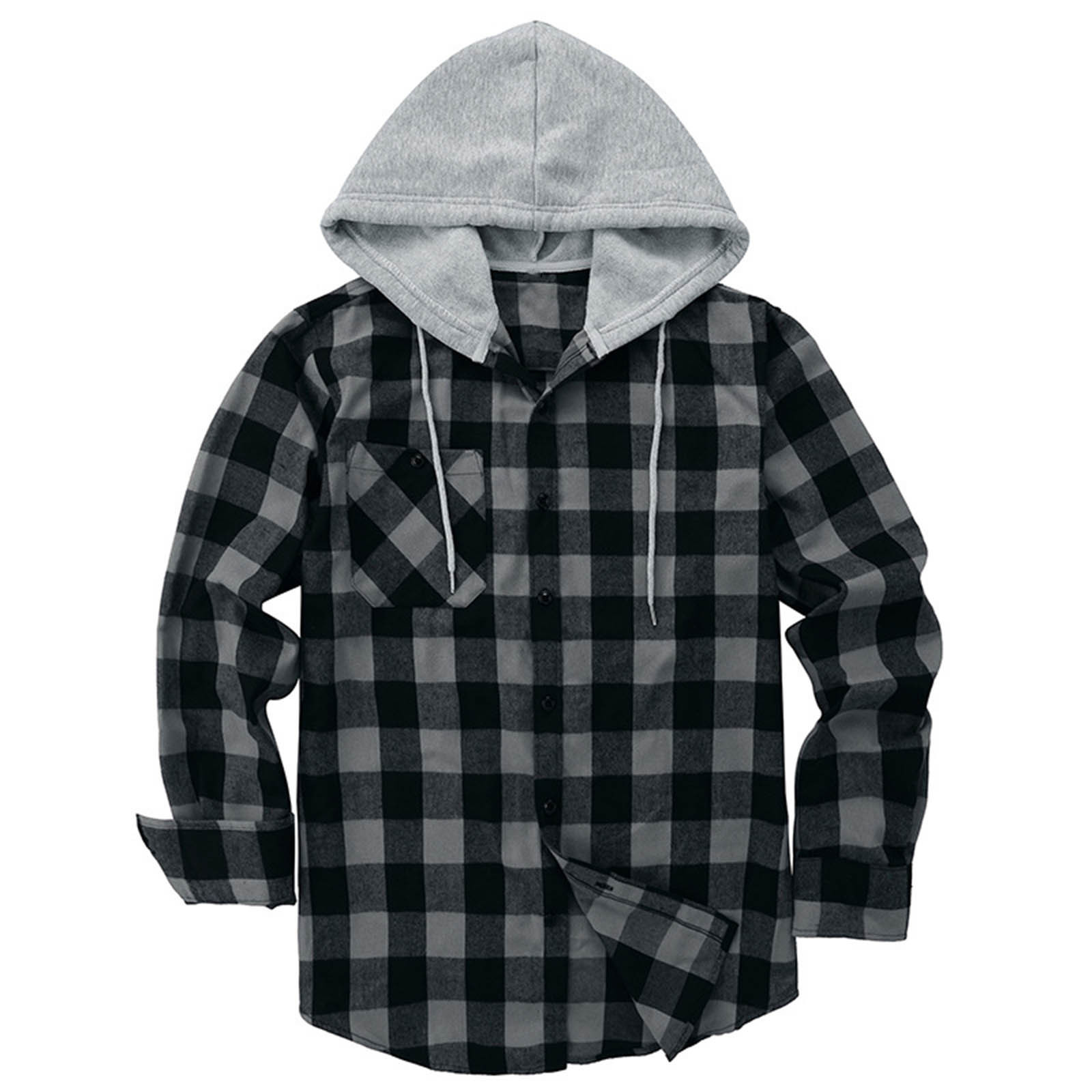 국경 간 후드 체크 셔츠 남자 2023 년 대외 무역 가을 하라주쿠 스타일 격자 무늬 후드 셔츠 남자 캐주얼 셔츠스토어 가기