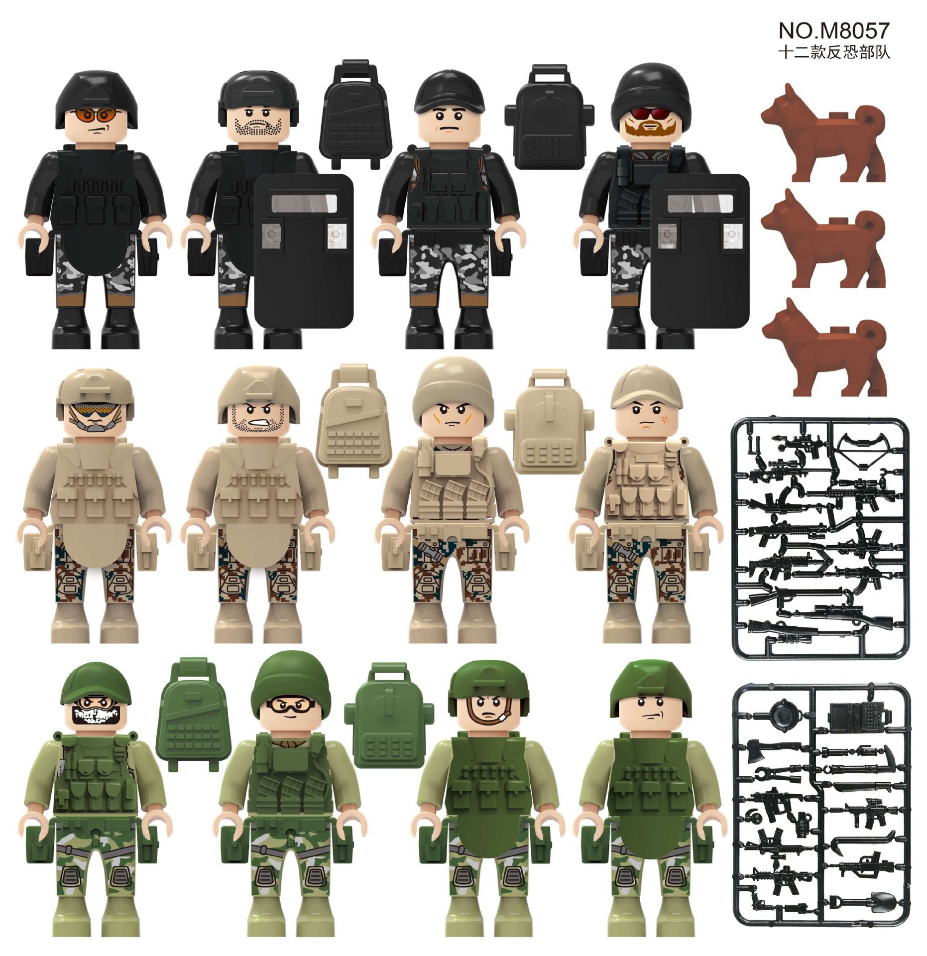 특수 군사 경찰, 특수 해상, 육상 및 공군 군대, 테러 방지 및 폭발 방지 빌딩 블록, 작은 입상 장난감, 대외 무역