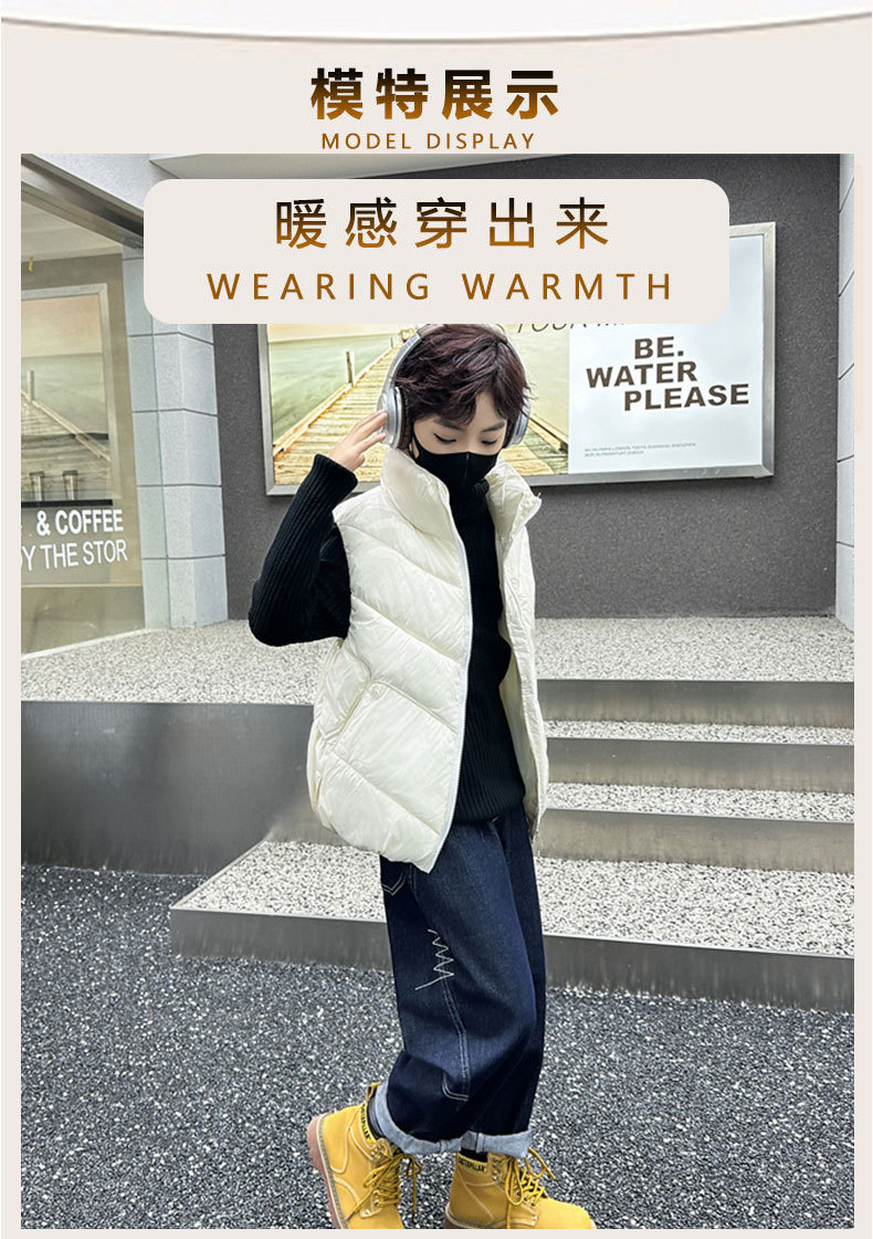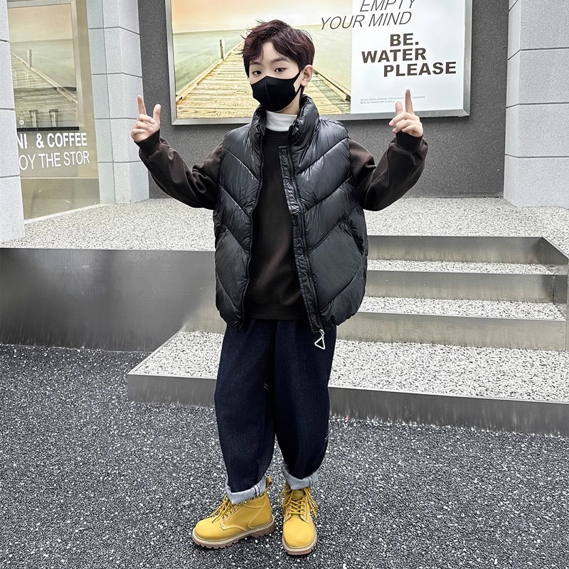 가을과 겨울 어린이 다운 코튼 조끼 학생 소년 중 큰 어린이 코트 소년 소녀 가을과 겨울 두꺼운 웨이스트 코트 조끼
