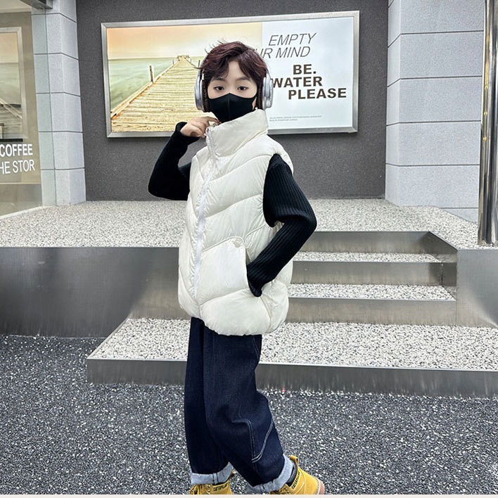 가을과 겨울 어린이 다운 코튼 조끼 학생 소년 중 큰 어린이 코트 소년 소녀 가을과 겨울 두꺼운 웨이스트 코트 조끼스토어 가기
