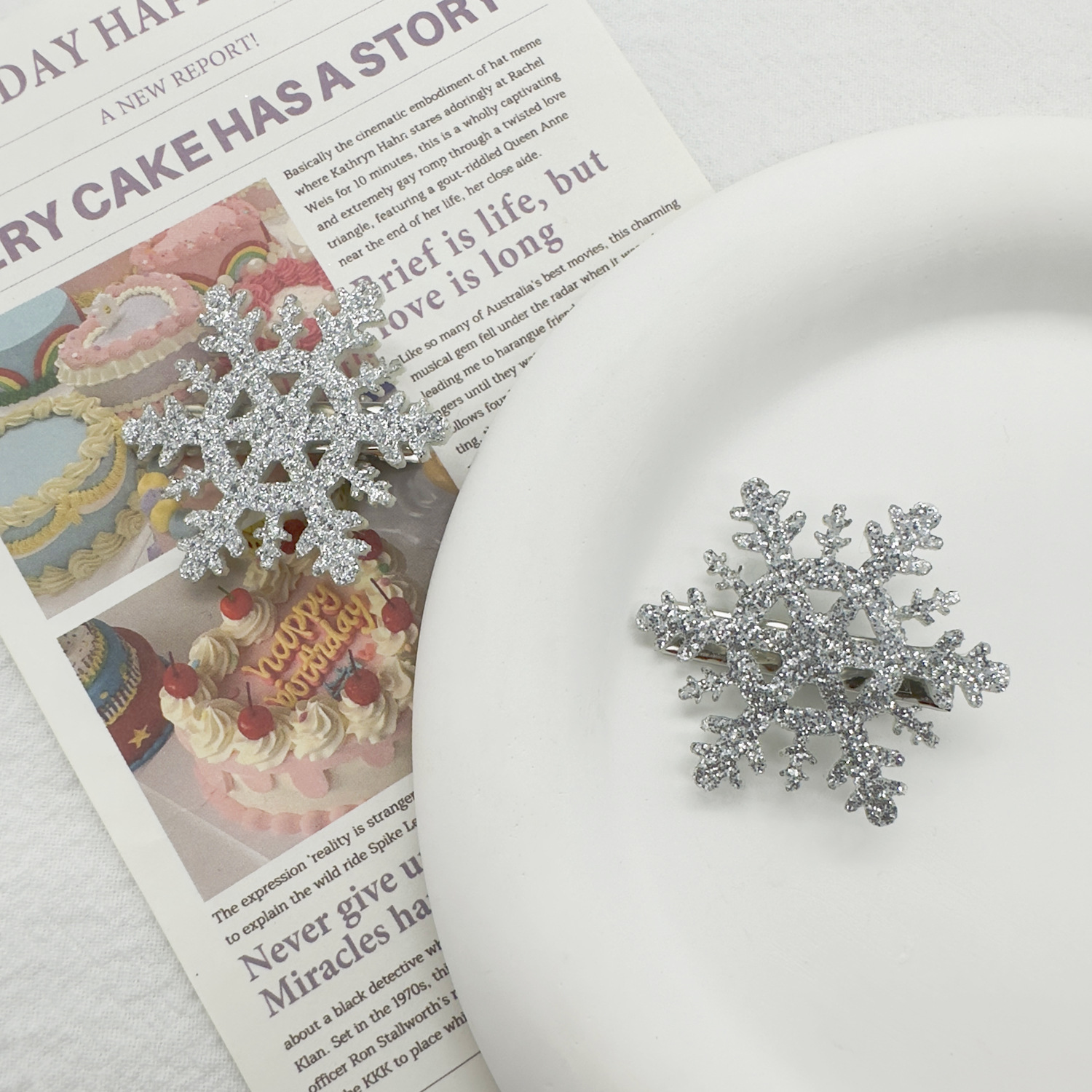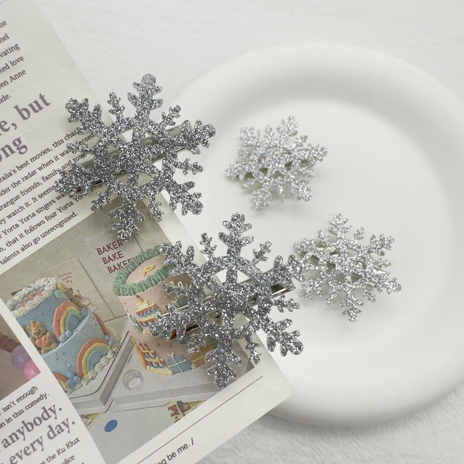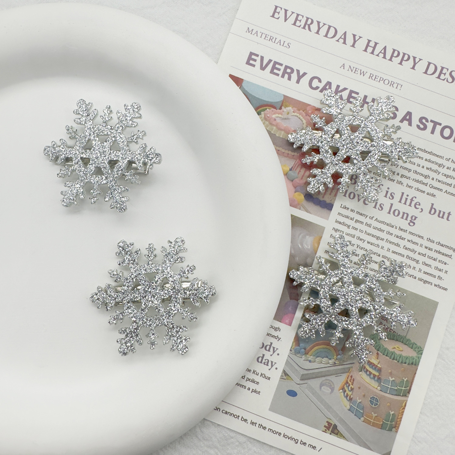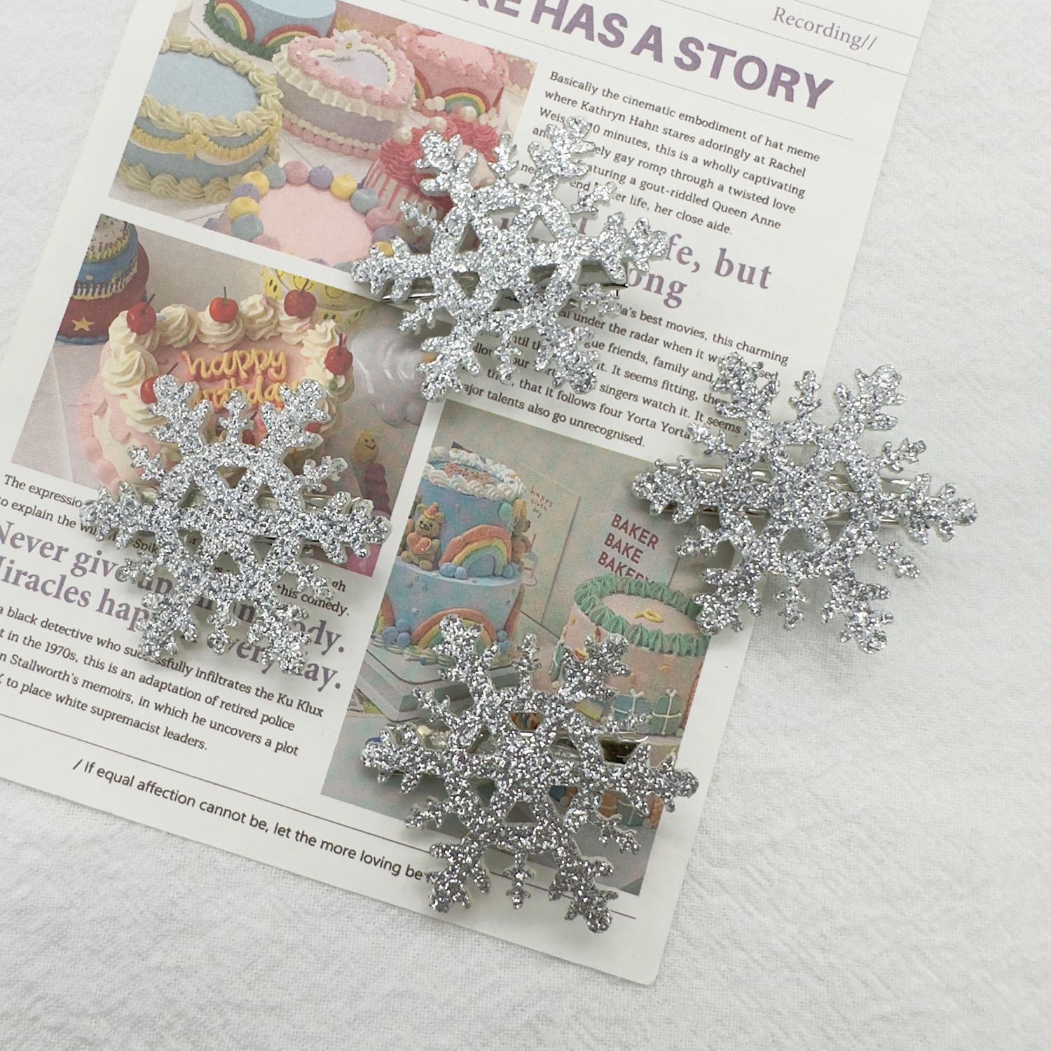겨울 반짝이는 눈송이 머리핀 덕빌 클립 슈퍼 요정 스타일 사이드 클립 달콤한 소녀 하트 앞머리 클립 크리스마스 헤어 액세서리