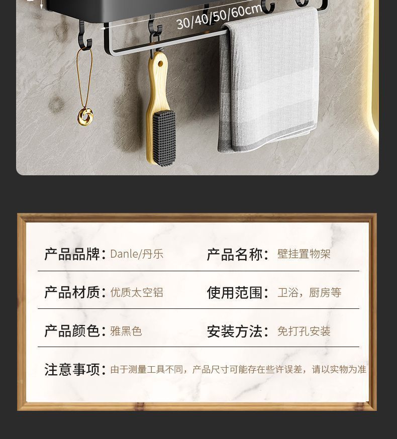 • [클래식 블랙] 단일 레이어 40cm 후크와 막대