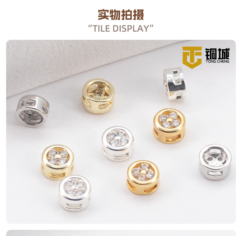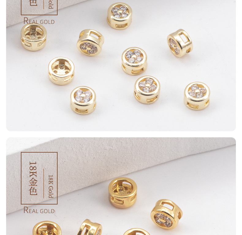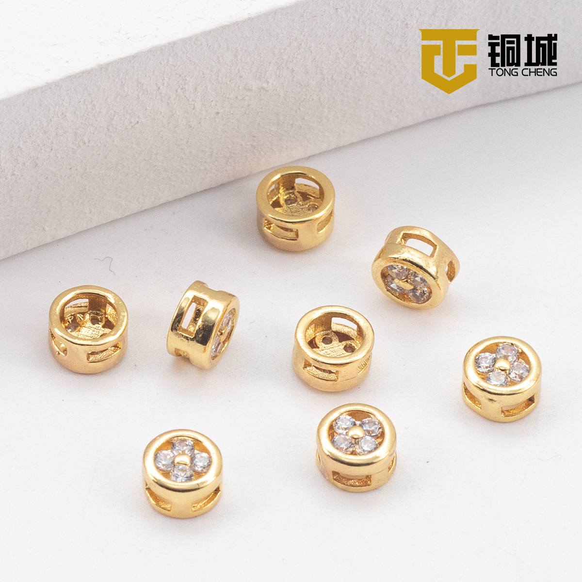 14K 패키지 골드 마이크로 상감 지르콘 작은 스페이서 구슬 느슨한 구슬 유지 진짜 금색 도금 핸드 메이드 diy 4 잎 클로버 라운드 비즈 소재스토어 가기