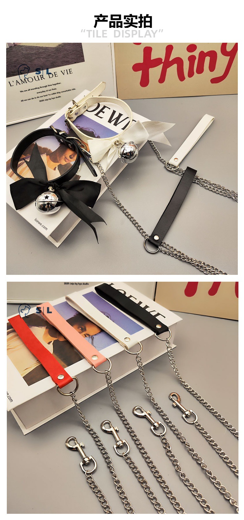 黑白人造革SM皮革项圈女朋克蝴蝶结铃铛情趣饰品牵引链情趣配件