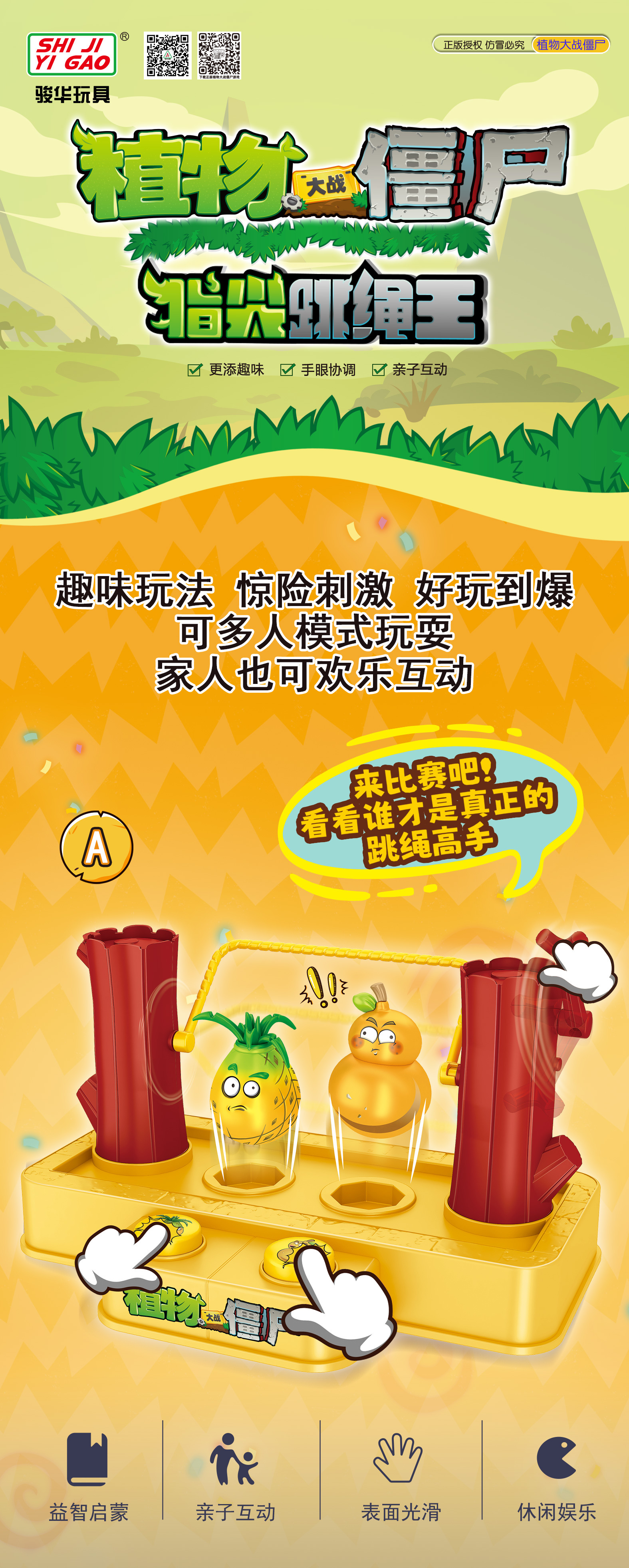 새로운 이국적인 장난감 어린이 인터랙티브 전투 게임 보드를 건너 뛰는 진정한 식물 대 좀비 손가락 끝 프레스 로프