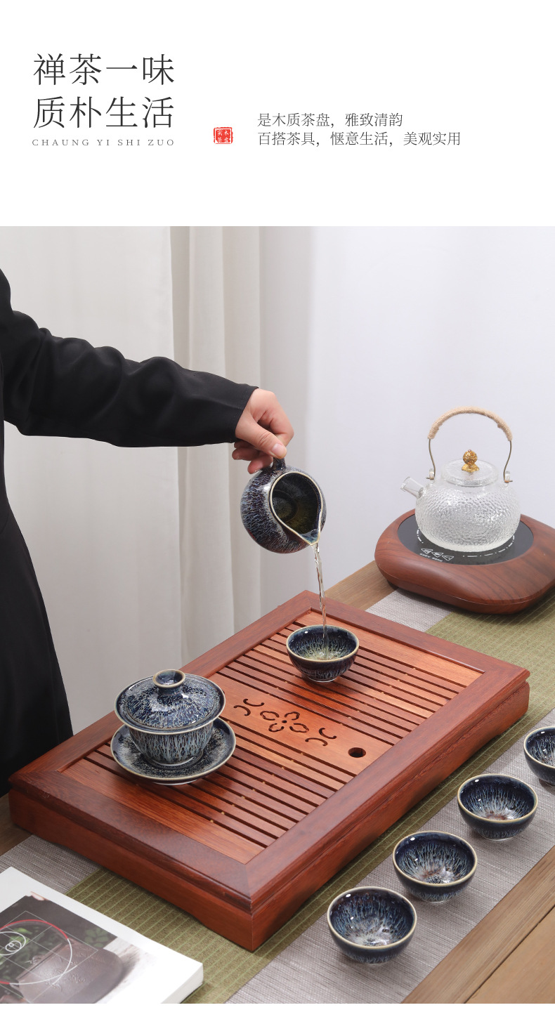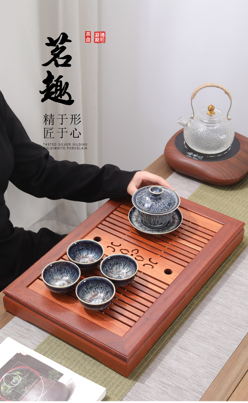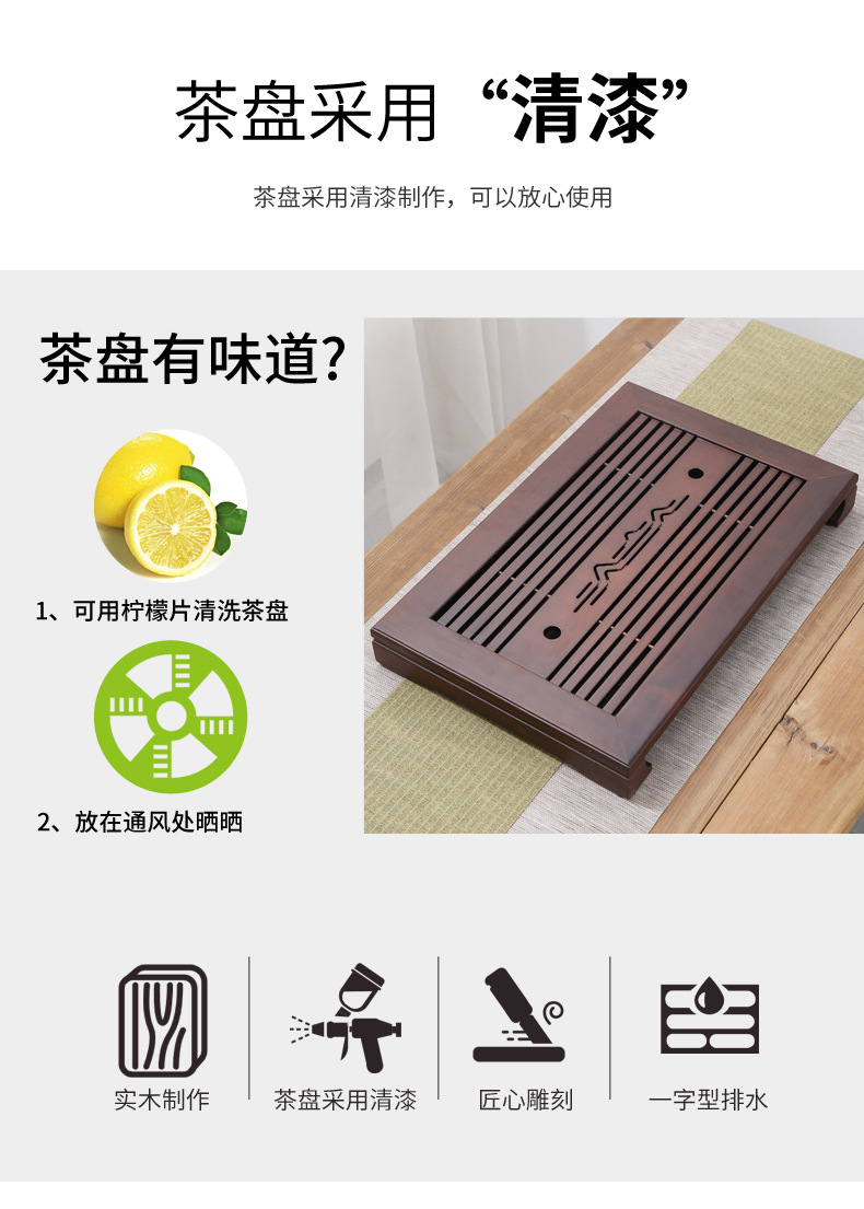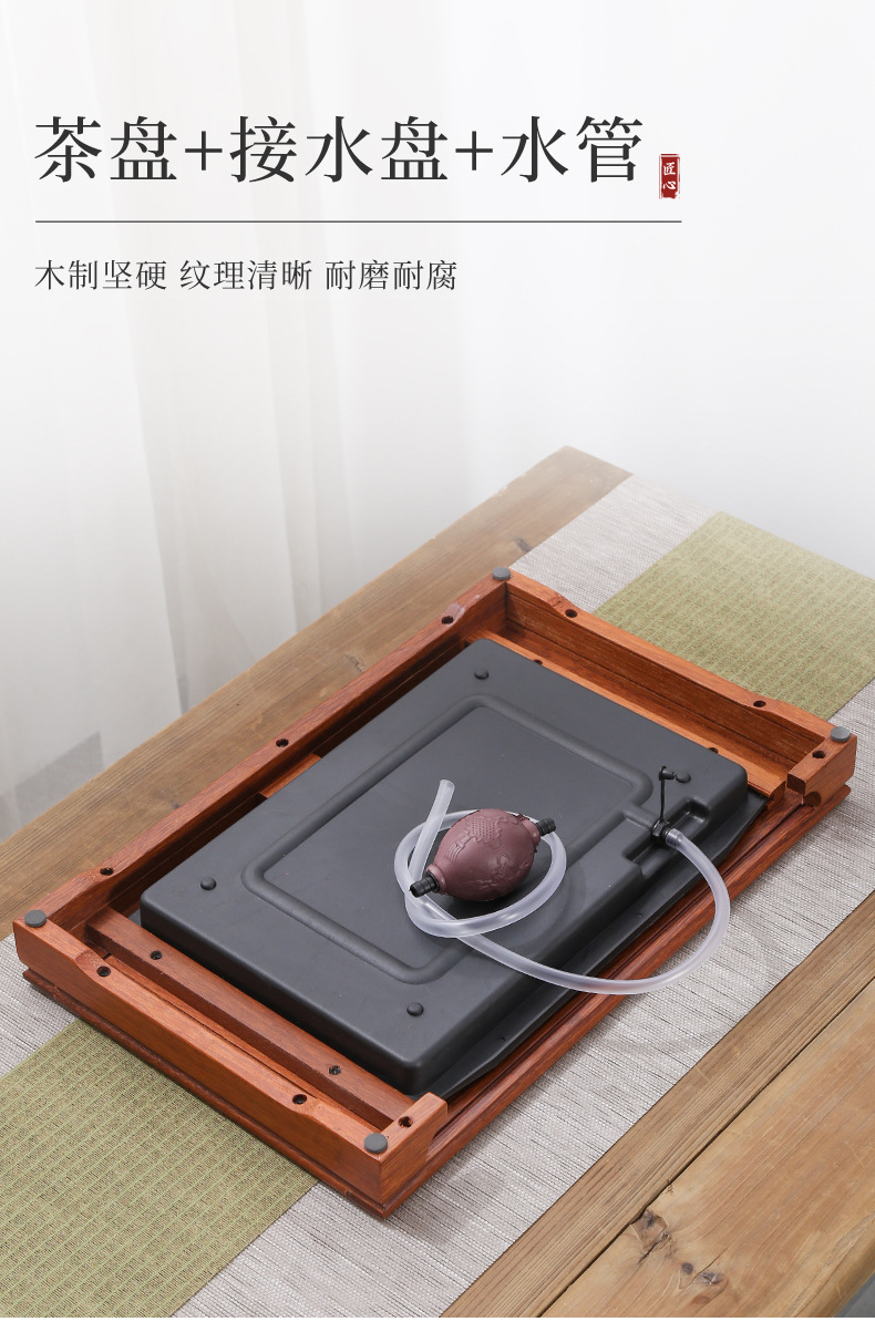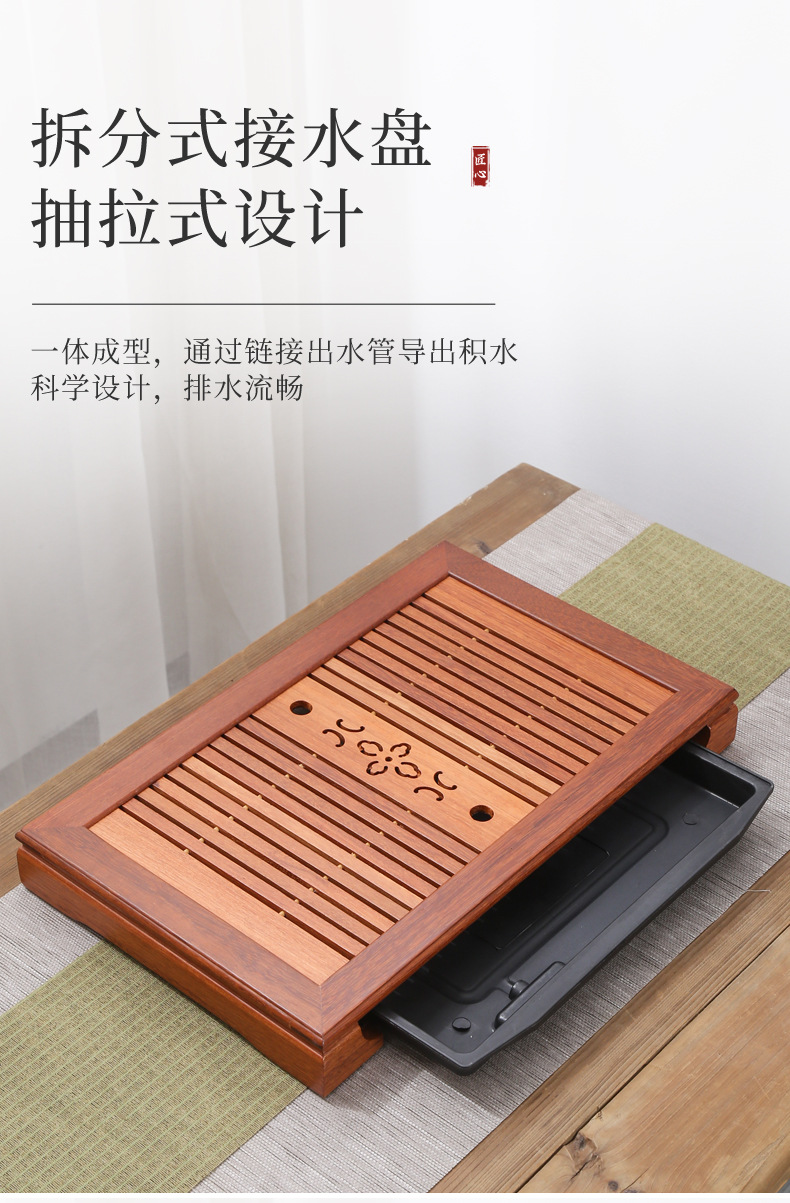 스테인리스 원목 차 트레이 건식 차 테이블 고급 가정용 라이트 럭셔리 중국식 서랍형 차 테이블 차 책상