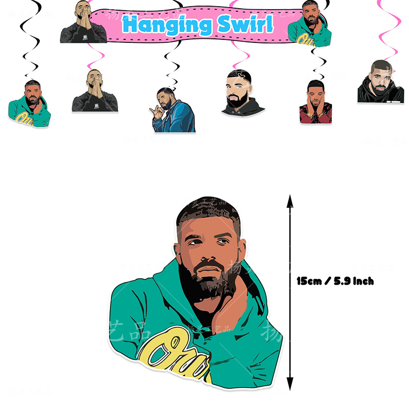 1 set Party Spirals Decor (6 Hanging Cards+6 Single Spirals: 3 Pink and 3 Black)