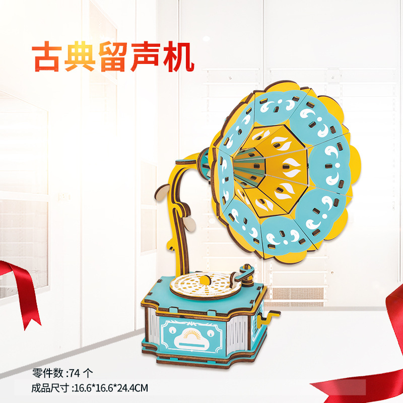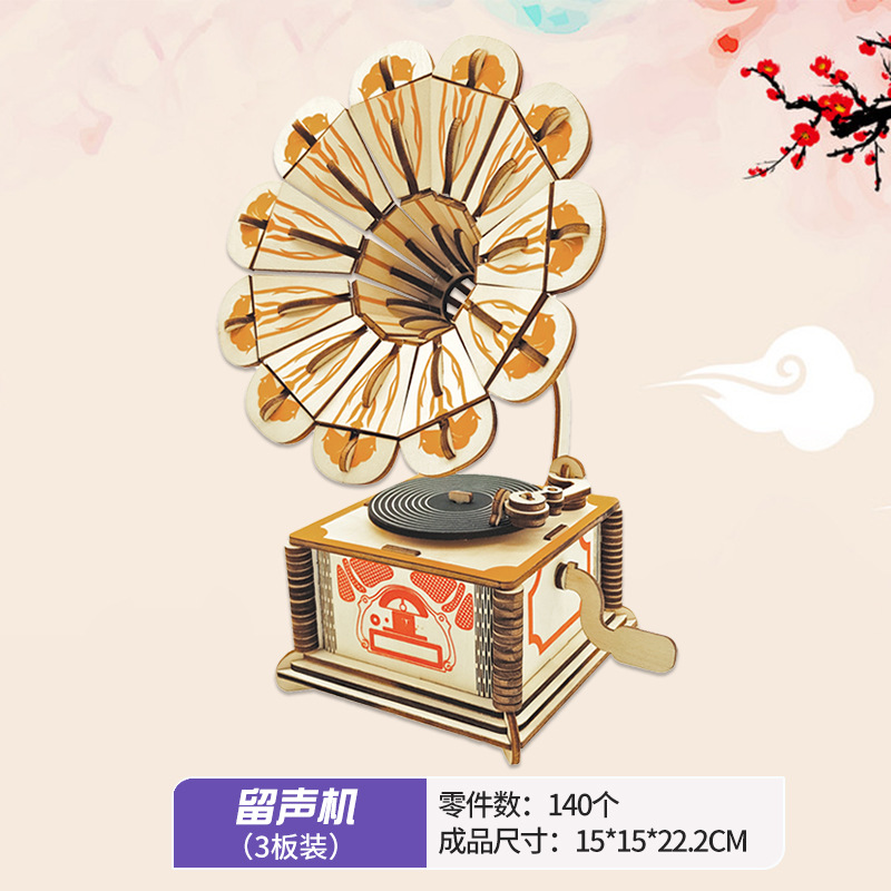 포노그래프 오래된 물건 수제 나무 3d 3D 퍼즐 모델 어셈블리 향수 장식 중소 과학 수업스토어 가기