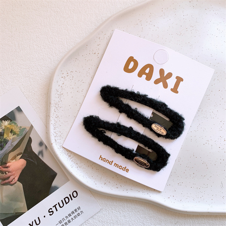 가을과 겨울 레트로 샤넬 스타일 플러시 BB 클립 헤어 액세서리 프랑스 사이드 클립 앞머리 머리 부러진 머리핀 머리 장식