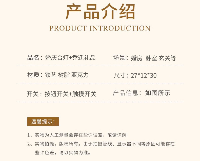 새해 축제 장식용 테이블 램프, 친척과 친구들을 위한 선물, 침실과 거실 장식, 신혼 축하 및 집들이 장식품