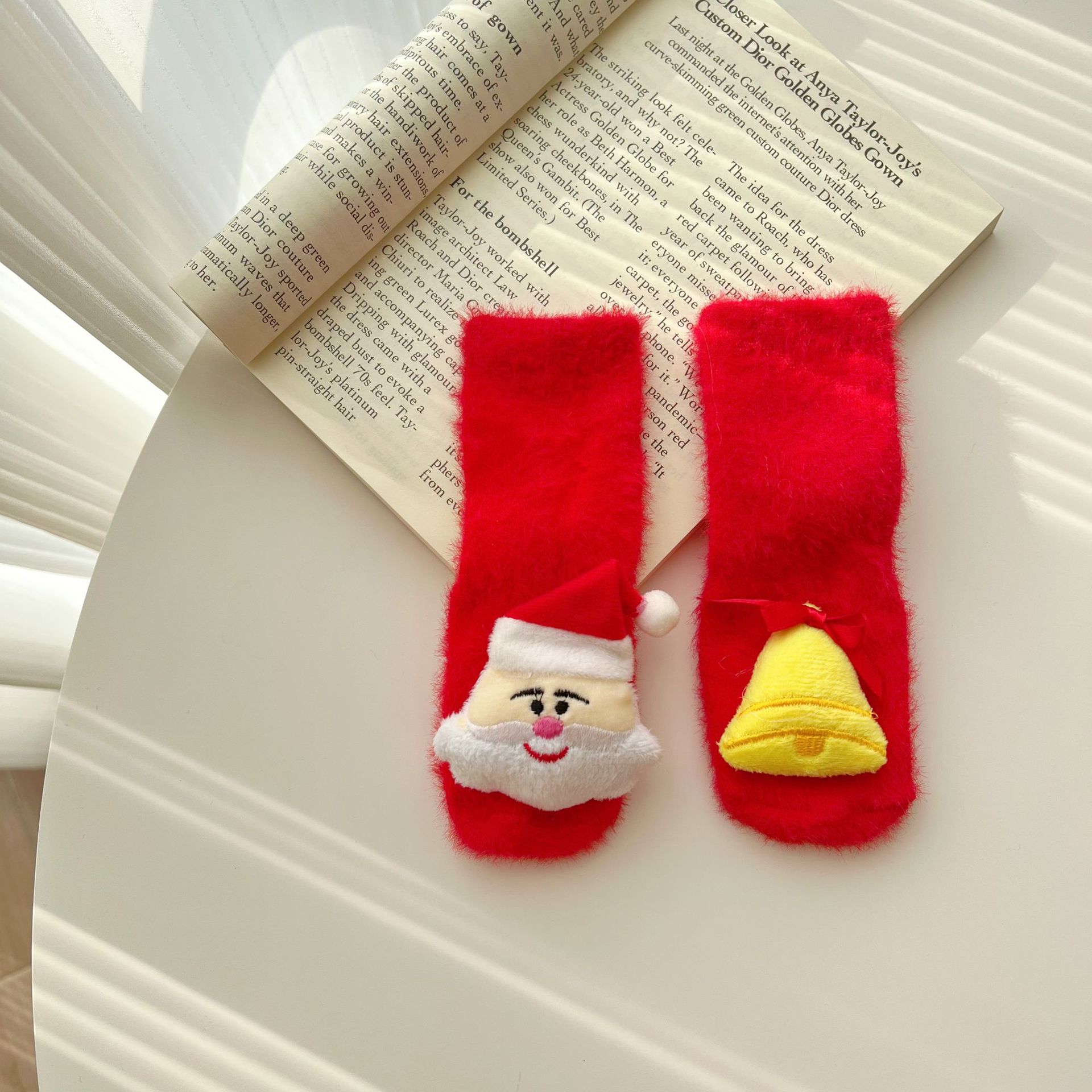 아기 빨간 크리스마스 양말 밍크 벨벳 따뜻한 중간 길이 아기 양말 신생아 귀여운 만화 바닥 양말스토어 가기