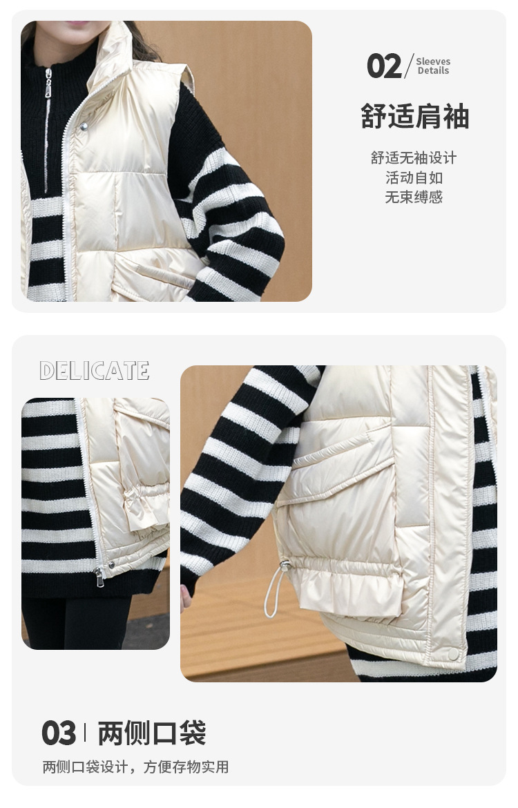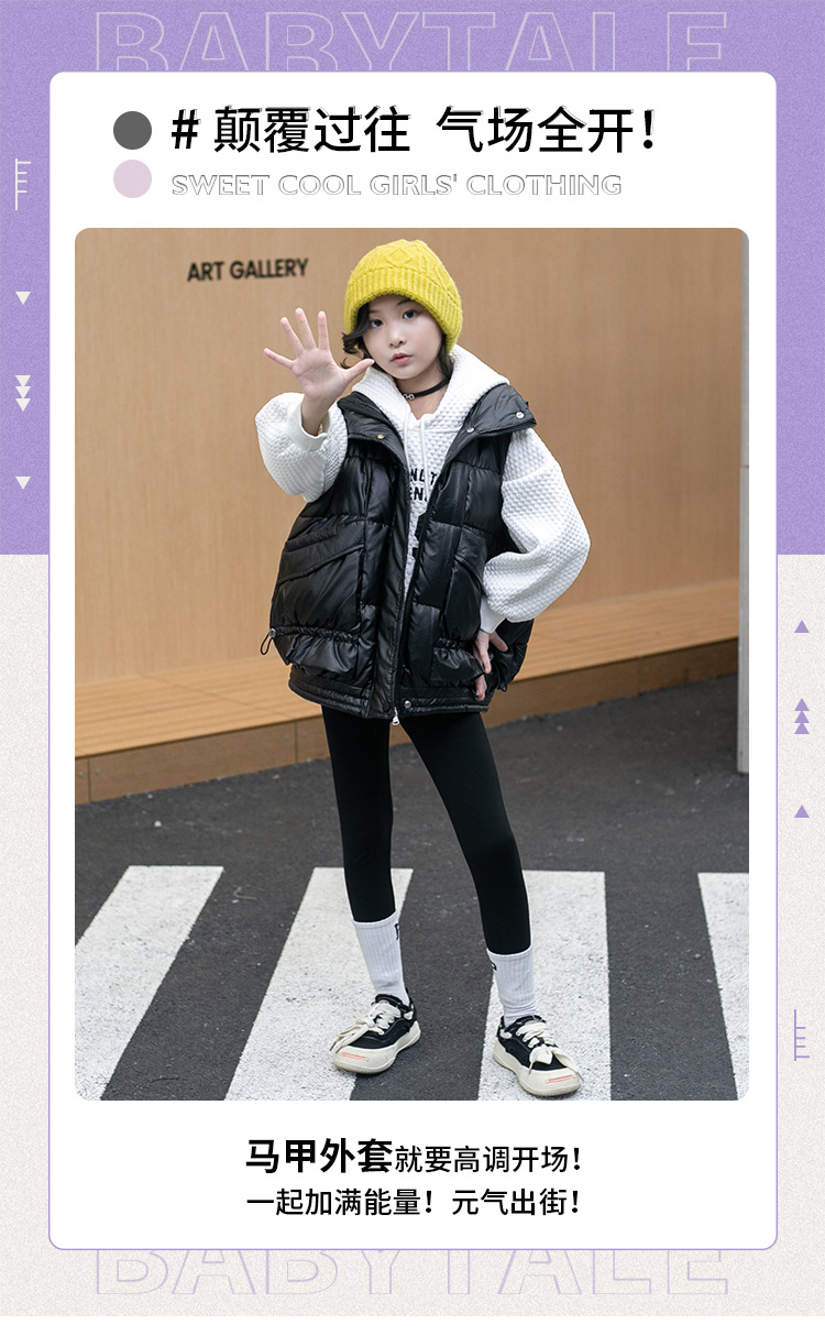 소녀 다운 코튼 조끼 가을과 겨울 어린이 밝은 표면 워시 프리 코트 큰 어린이 서양식 두꺼운 겉옷 조끼 패션스토어 가기