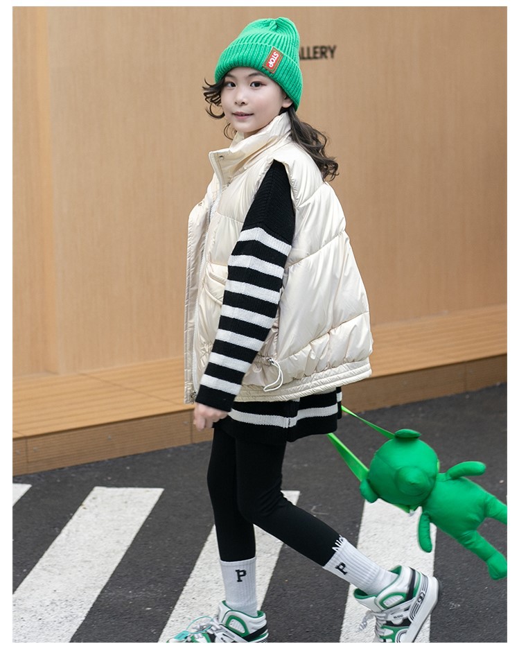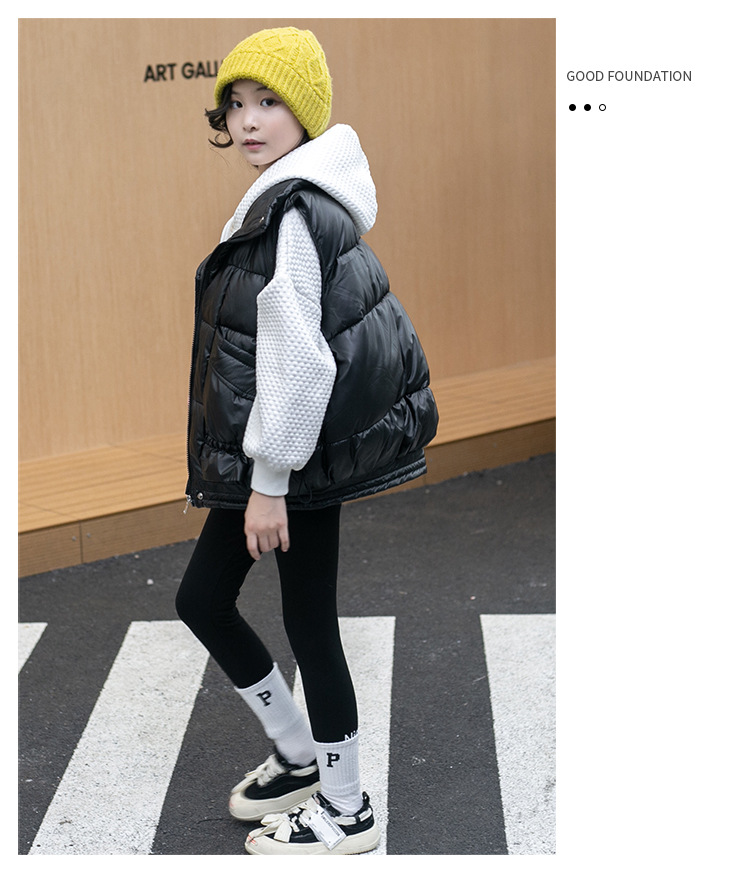 소녀 다운 코튼 조끼 가을과 겨울 어린이 밝은 표면 워시 프리 코트 큰 어린이 서양식 두꺼운 겉옷 조끼 패션