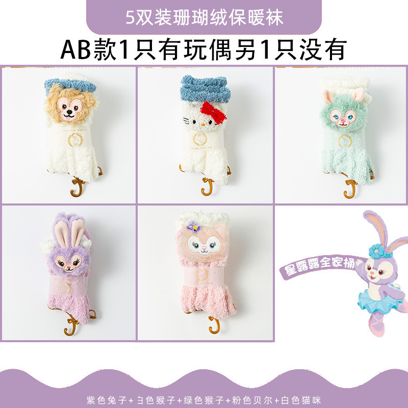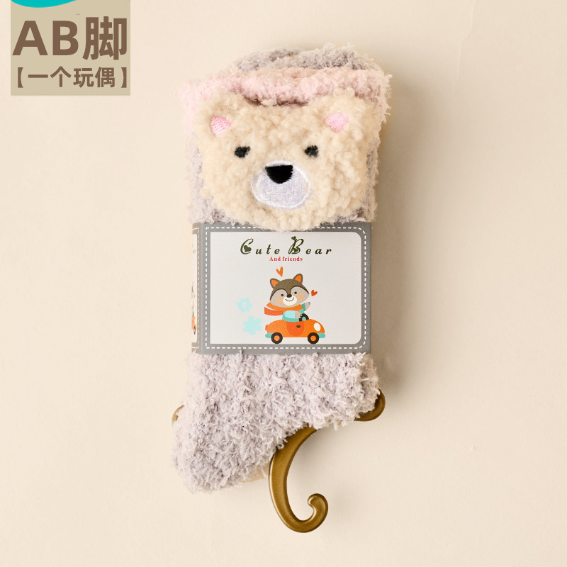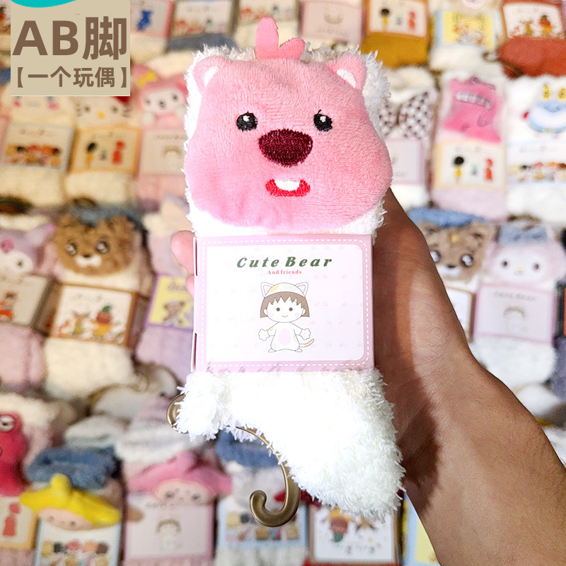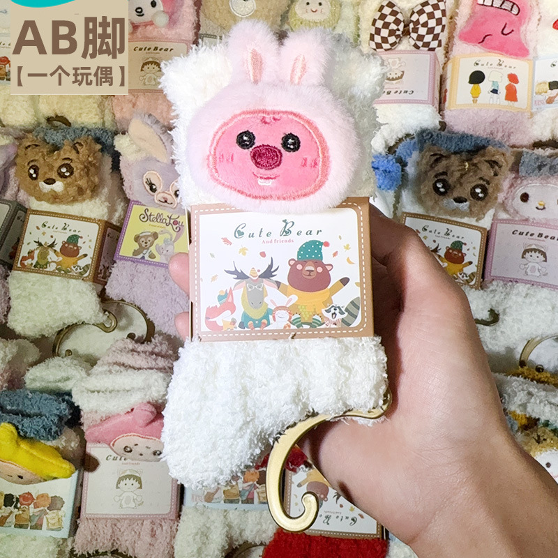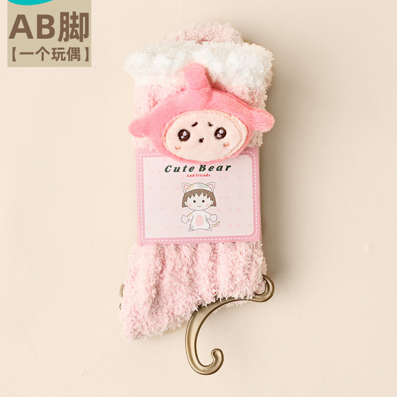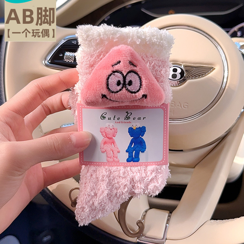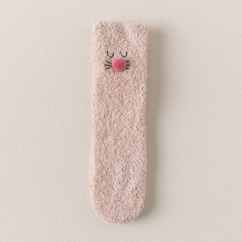 산호 벨벳 양말 여성의 두꺼운 인형 가을과 겨울 따뜻한 수면 바닥 양말 감금 봉제 모피 중반 종아리 길이 양말