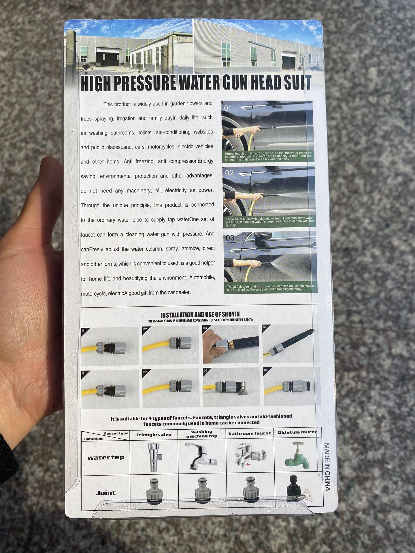 정원 급수 4 파이프 플라스틱 바디 합금 가정용 세차 물 총 커넥터 회색 버블 쉘 세트스토어 가기
