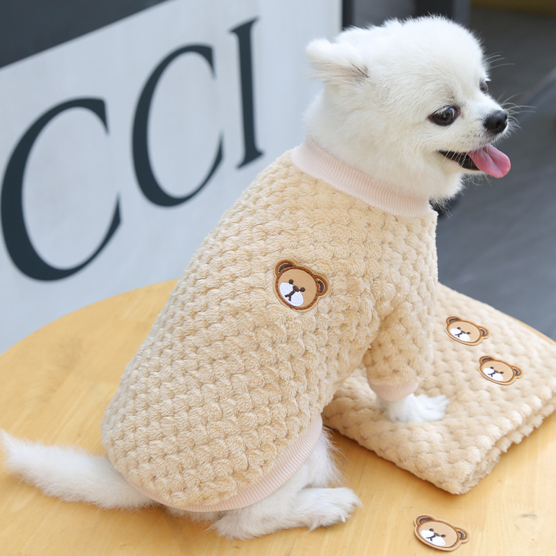 크고 작은 개 옷 고양이 애완 동물 옷 가을과 겨울 새로운 애완 동물 용품 벨벳 옷 프랑스 양동이 두 다리 옷 격자 무늬스토어 가기