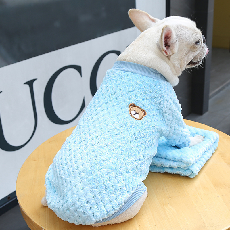 크고 작은 개 옷 고양이 애완 동물 옷 가을과 겨울 새로운 애완 동물 용품 벨벳 옷 프랑스 양동이 두 다리 옷 격자 무늬