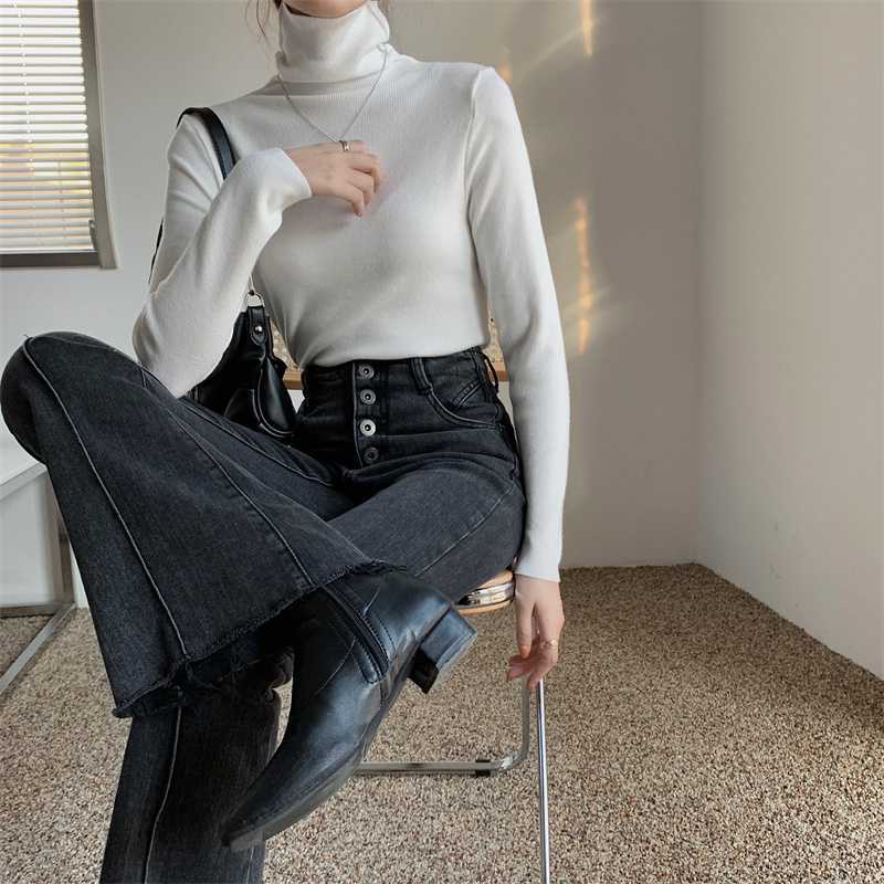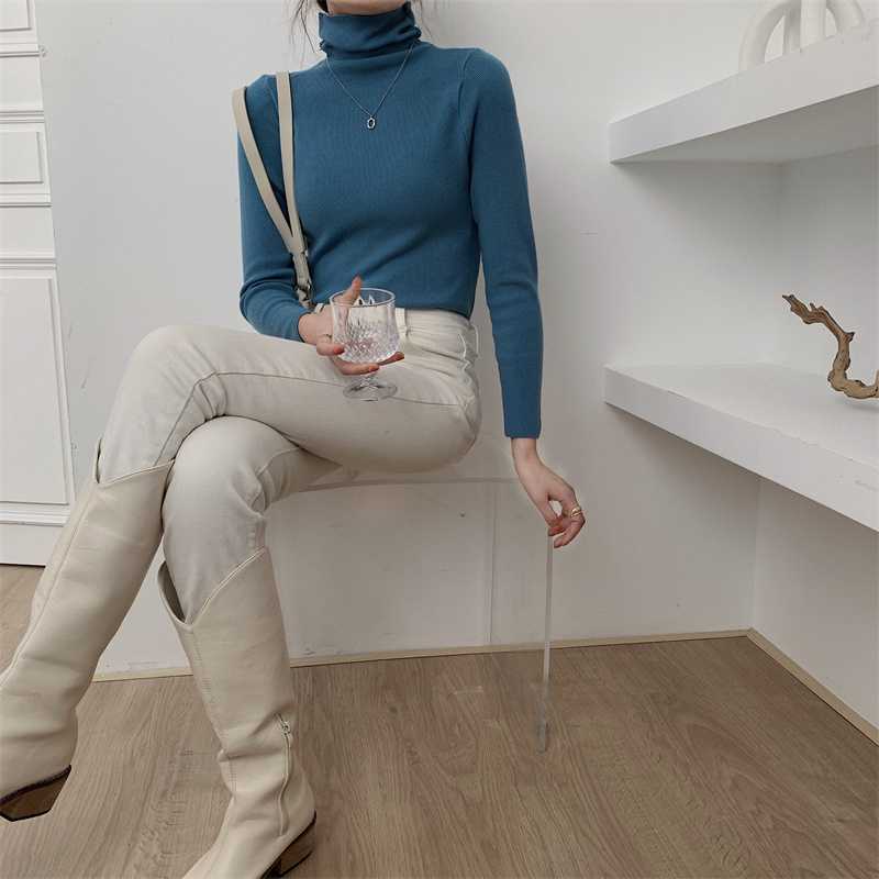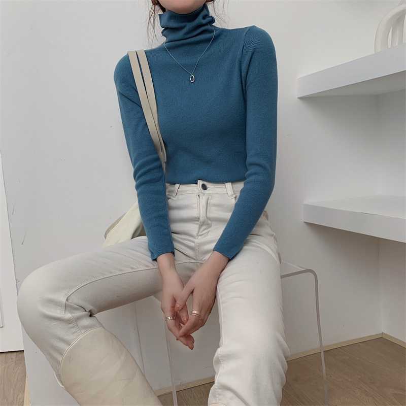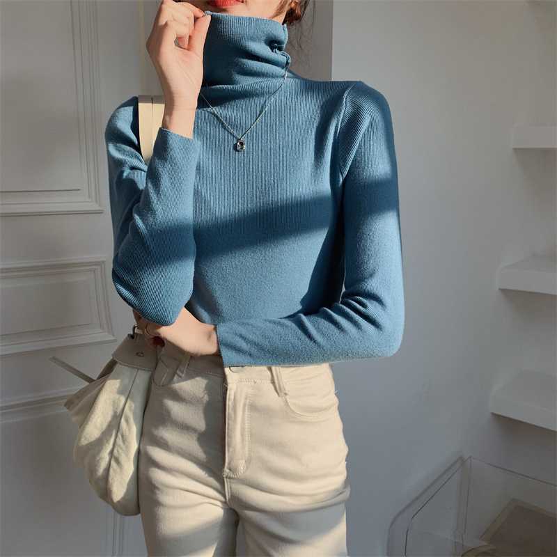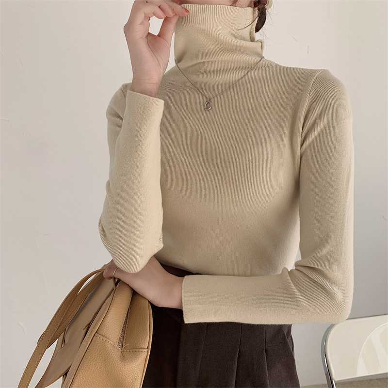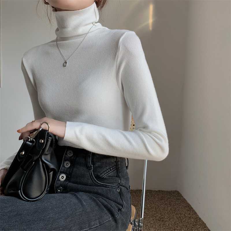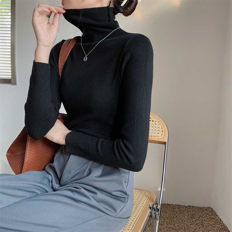 진짜 샷 새로운 패션 가을과 겨울 서양식 게으른 밑바닥 셔츠 터틀넥 스웨터 2023 한국 미니멀리스트 올매치스토어 가기