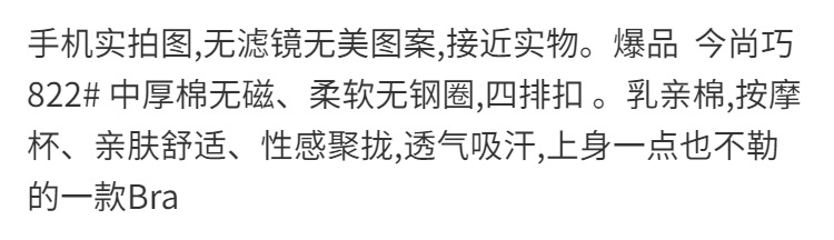 오늘 Shangqiao 822 중간 두꺼운 가슴면 간단한 푸시 업 조정 가능한 유방 컬렉션을 편안하고 착용하기 쉬운 브래지어 여성용 속옷