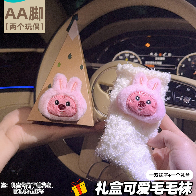 룰루 리틀 비버 선물 상자 양말 산호 양털 겨울 두꺼운 따뜻한 만화 귀여운 여자 친구 커플 양말 선물 양말