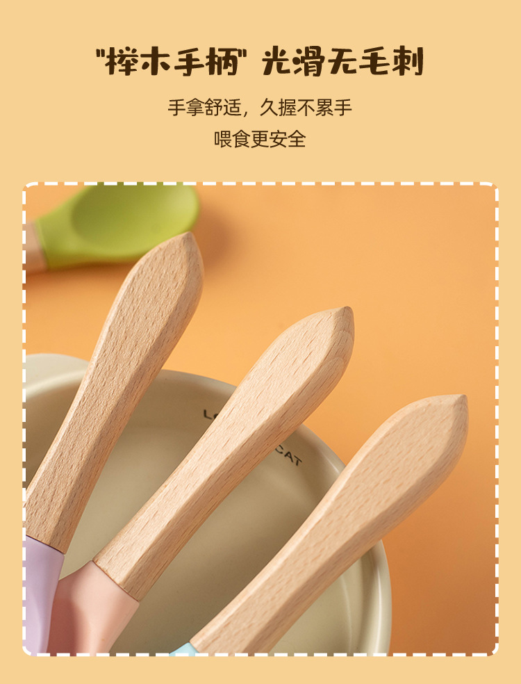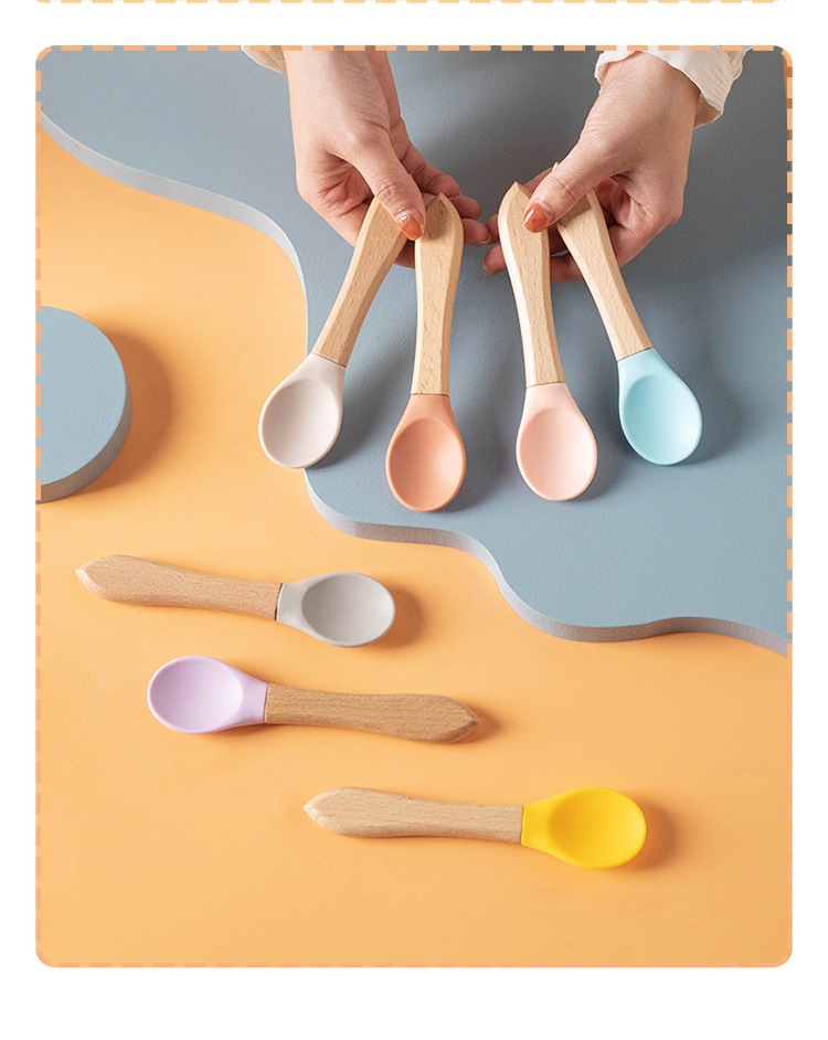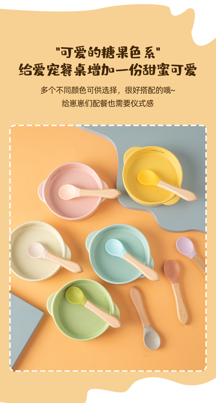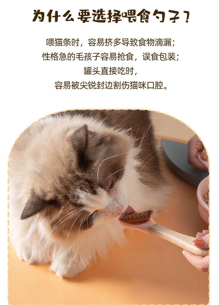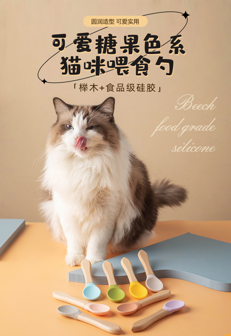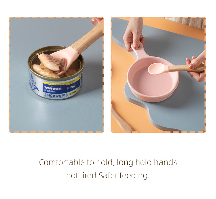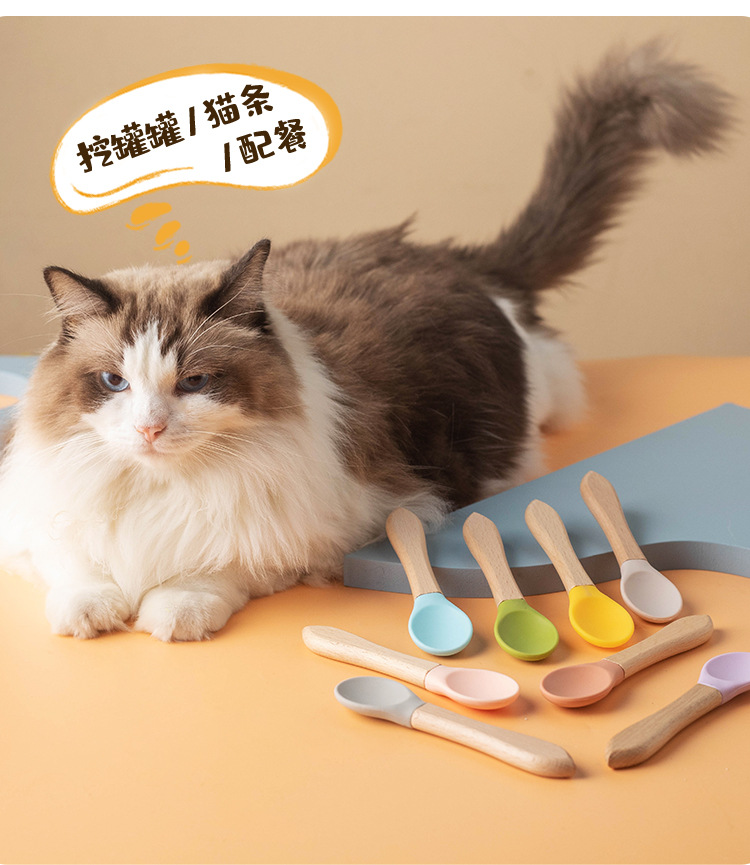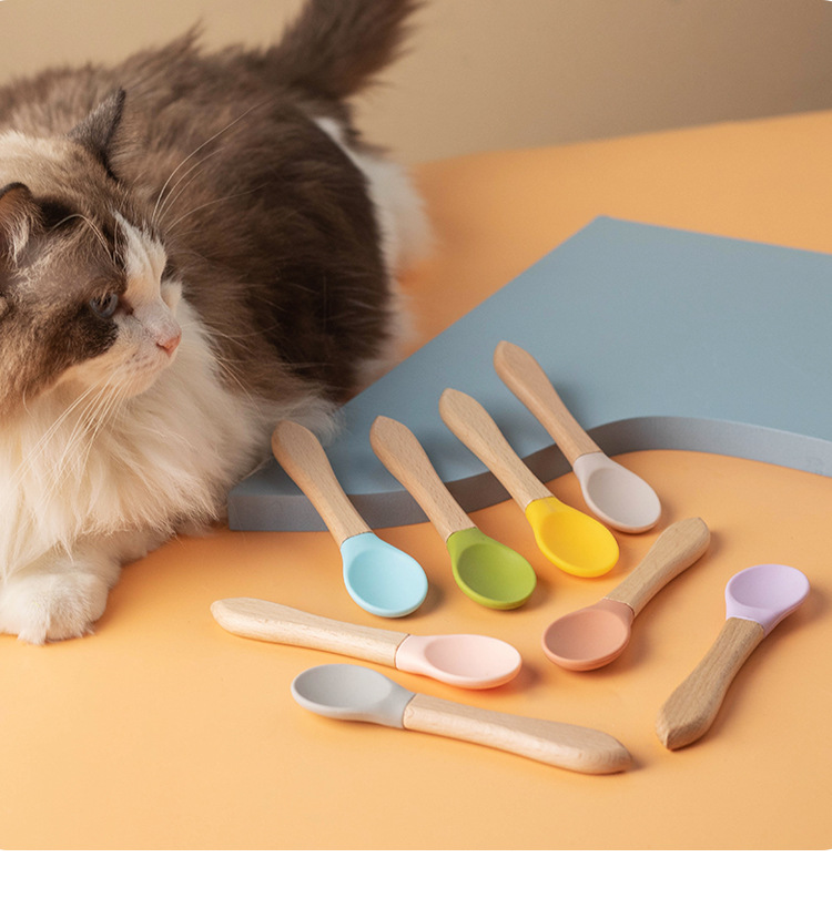 통조림 애완 동물 고양이 숟가락 나무 손잡이 실리콘 새끼 고양이 젖은 음식 먹이 숟가락 베이비 푸드 등급 재료 애완 동물 용품