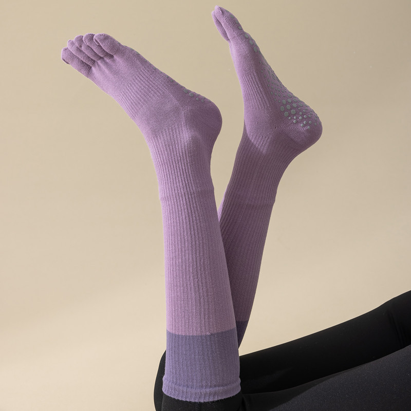 • 23359 다섯 손가락 분배 종아리 양말 보라색
