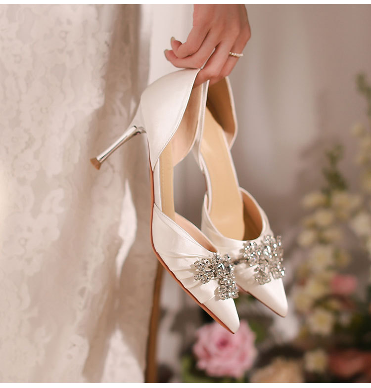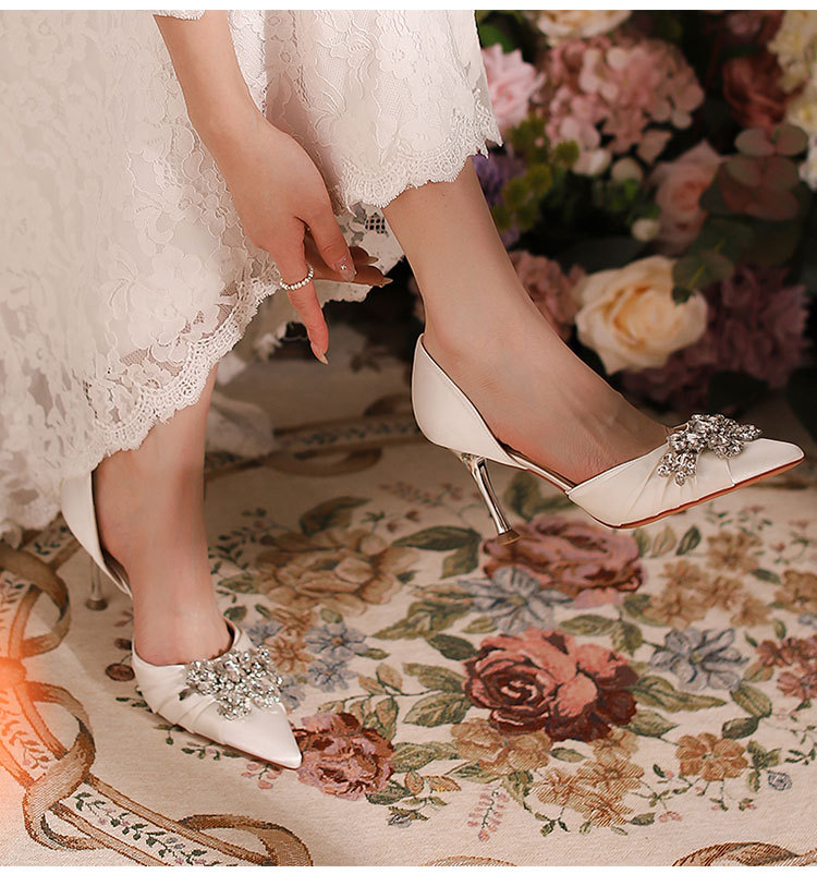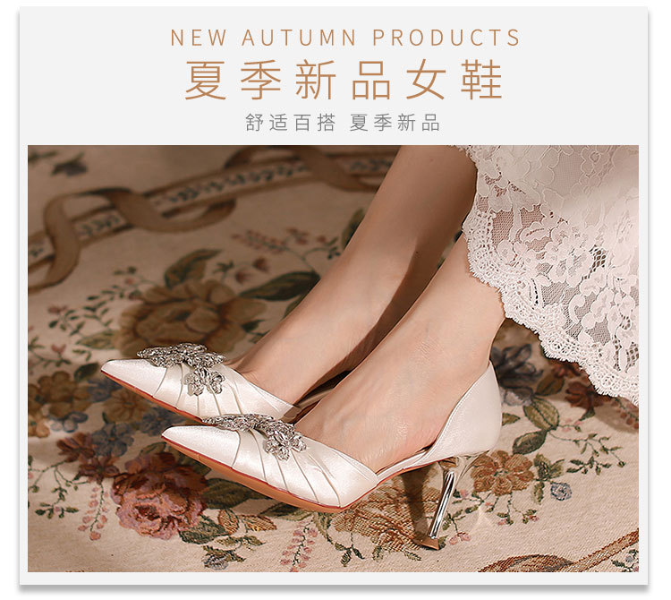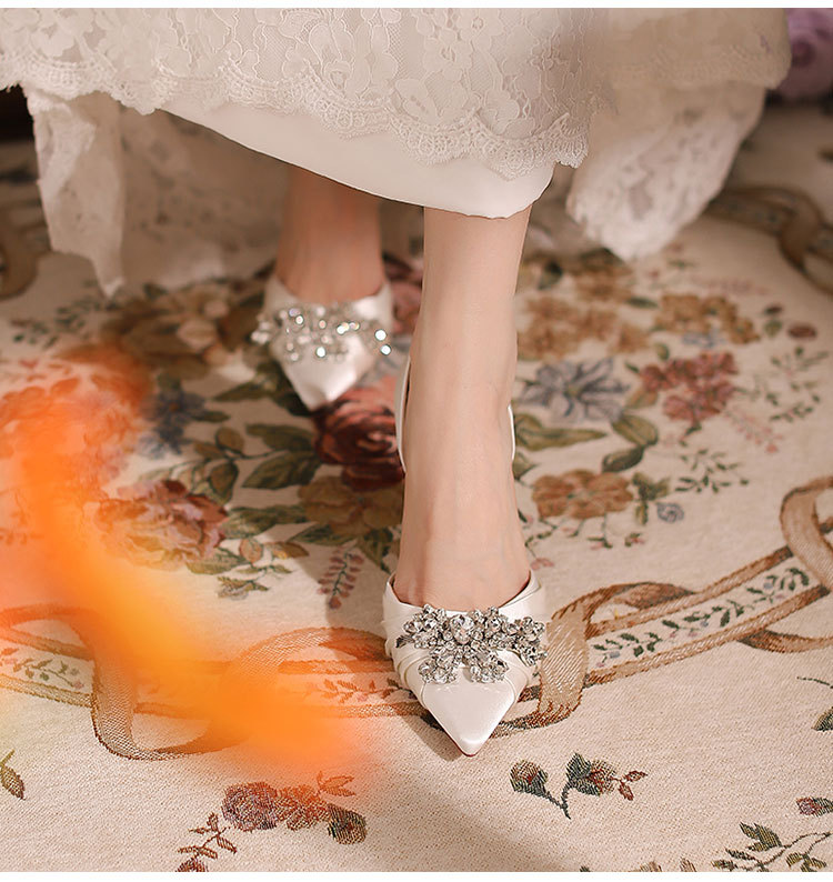 스팟 Z-61 하이힐 간단한 여름 새 스타일 Baotou 스틸레토 힐 라인 석 국경 지적 발가락 여성용 대형 중공 샌들