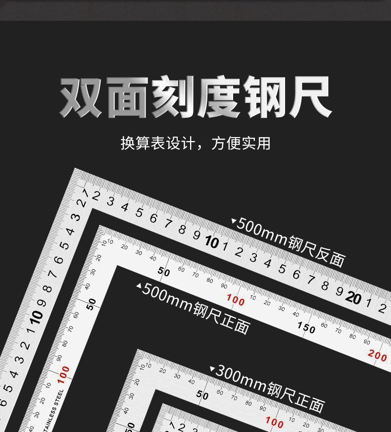 스테인레스 스틸 앵글 통치자 90 도 직각 선회 통치자 L 형 다기능 목공 직각 측정 두꺼운 양면 강철 각도 통치자