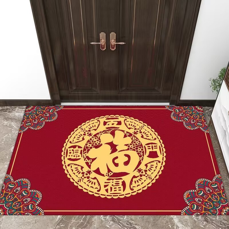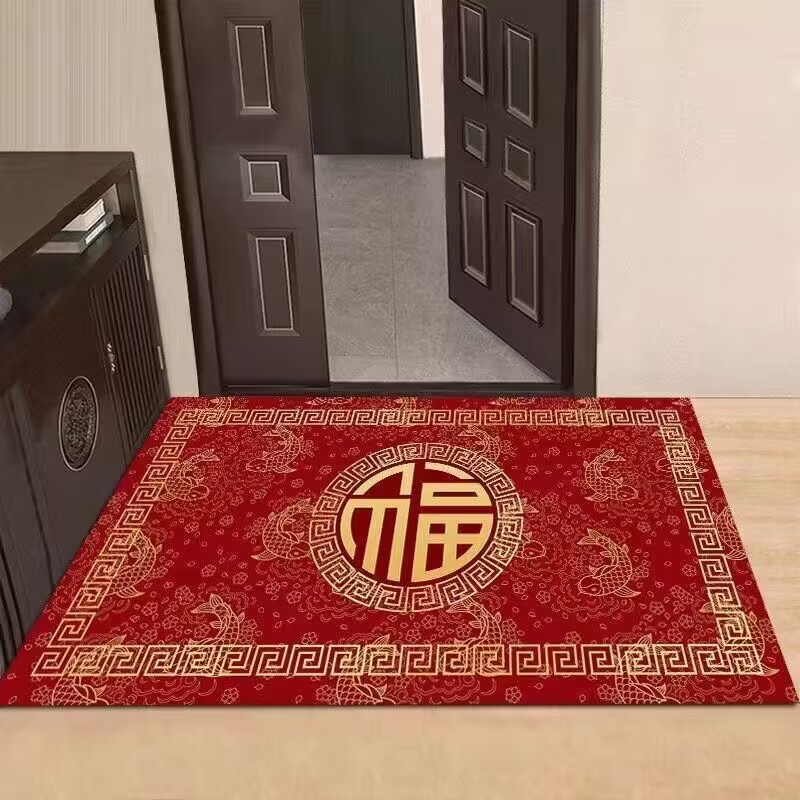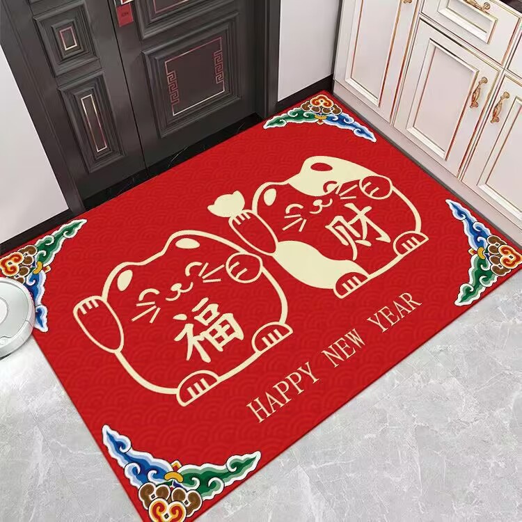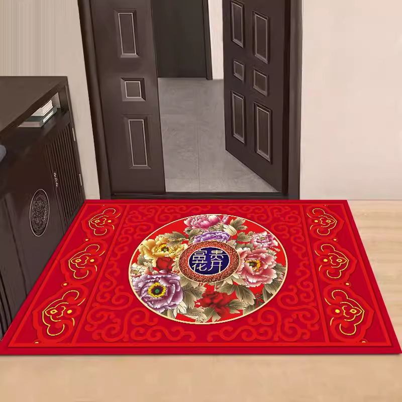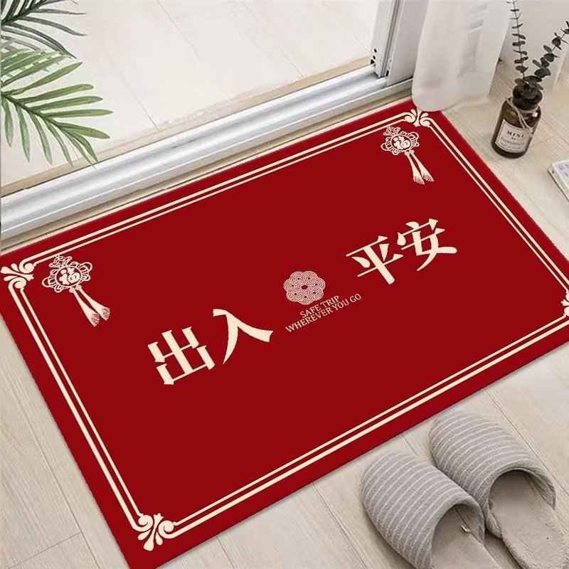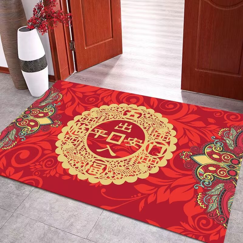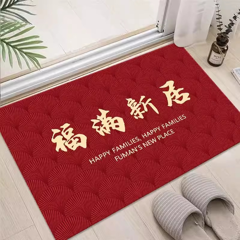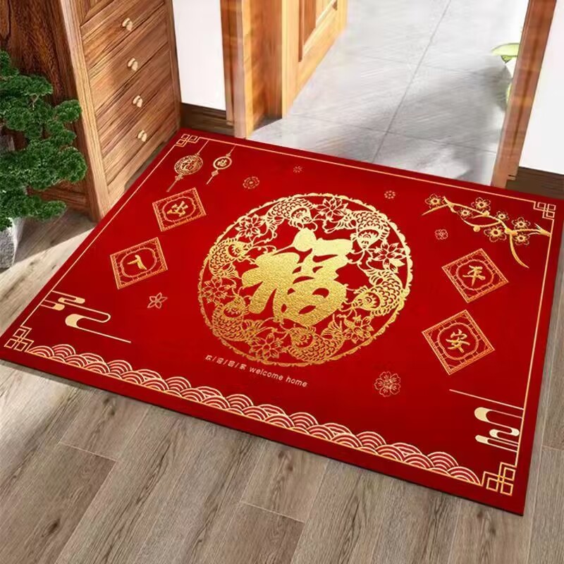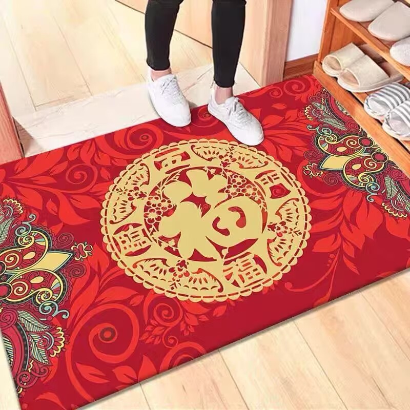 새해 붉은 축제 문 매트 홈 거실 문 매트 주방 침실 욕실 미끄럼 방지 문 매트