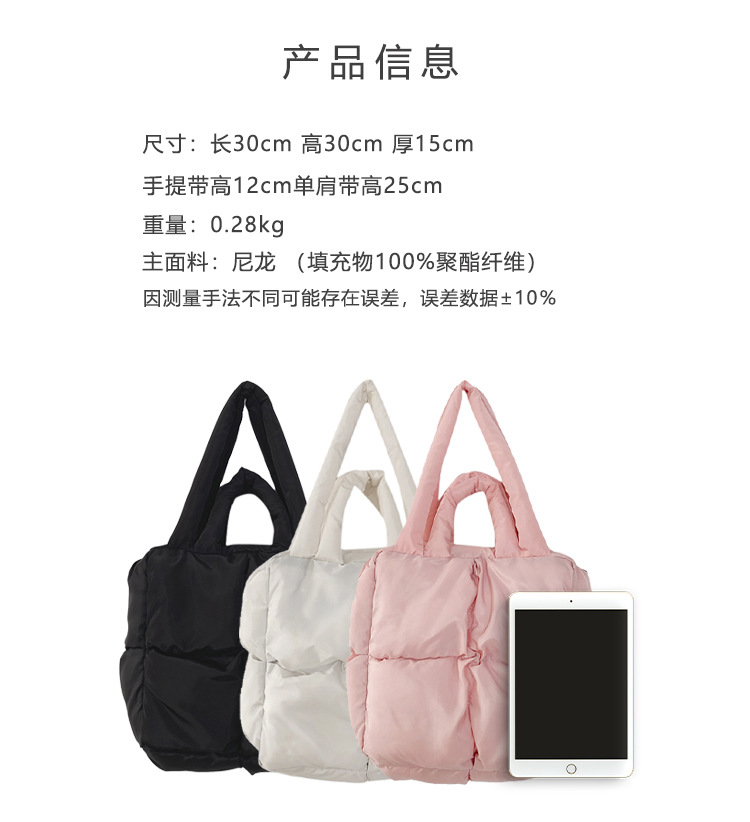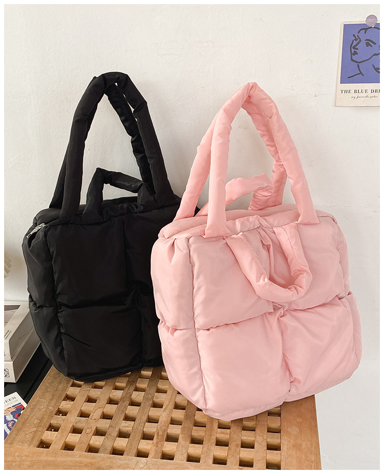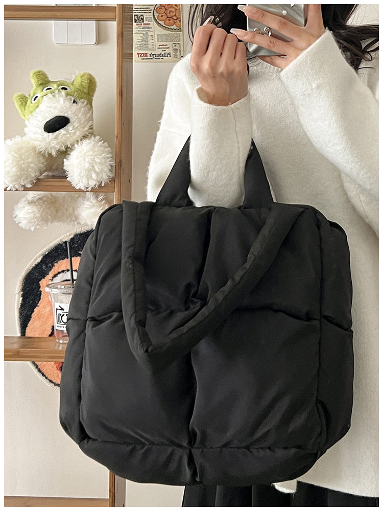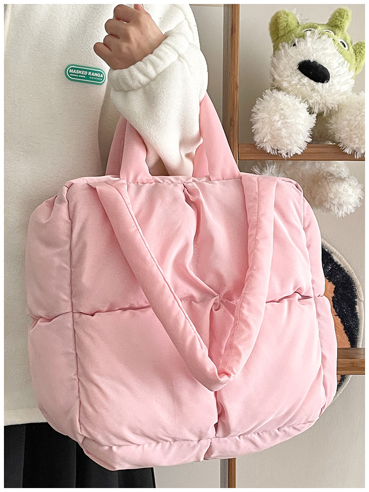 새로운 가을, 겨울 가방 여성 한국어 스타일 대용량 코튼 가방 패션 다목적 어깨 가방 다운 가방 휴대용 토트 백